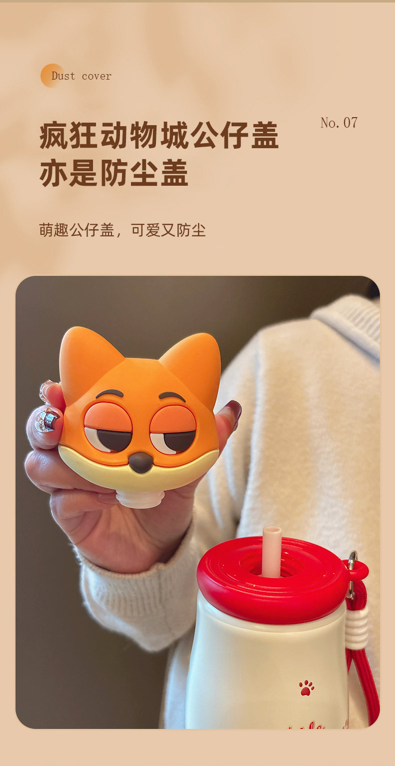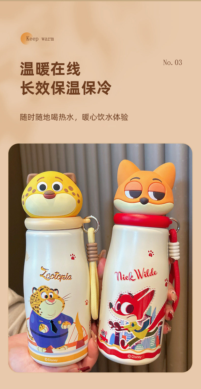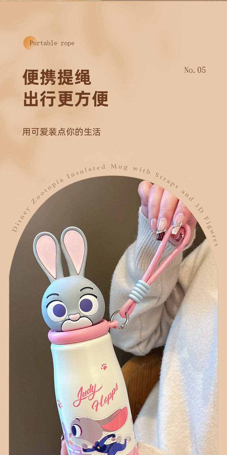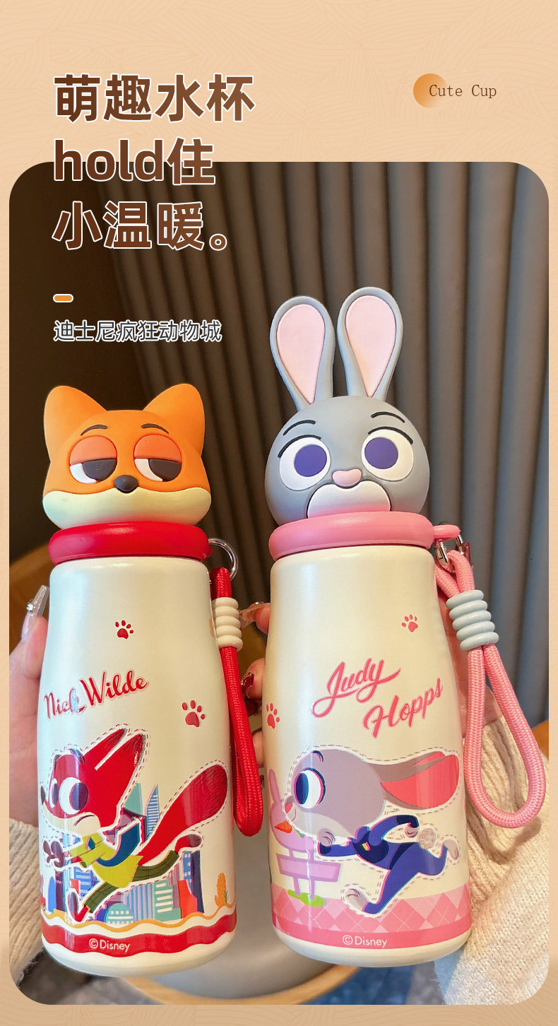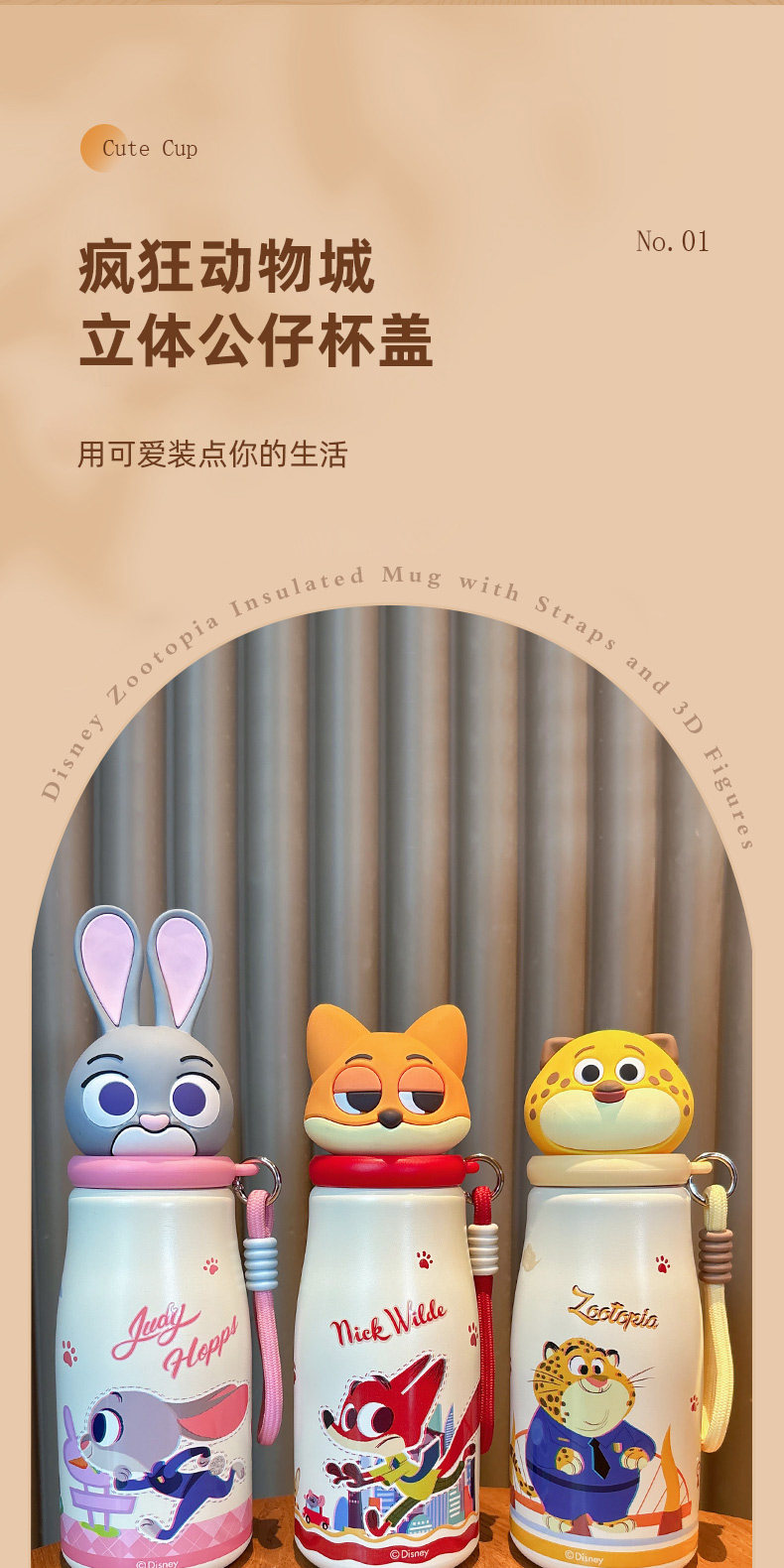 【带防伪标签】疯狂动物城儿童保温杯女生日新年礼物高颜值水杯便携学生背带上班