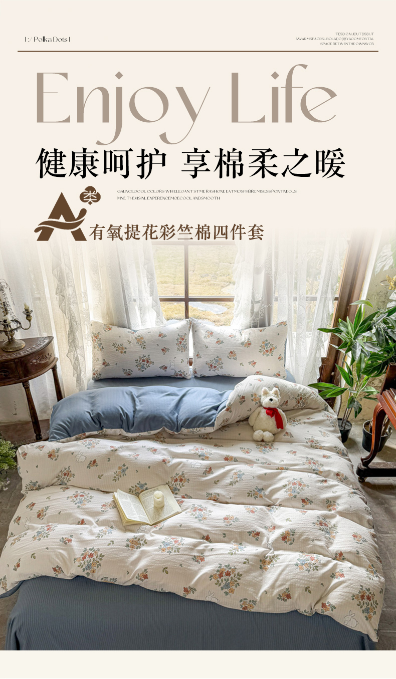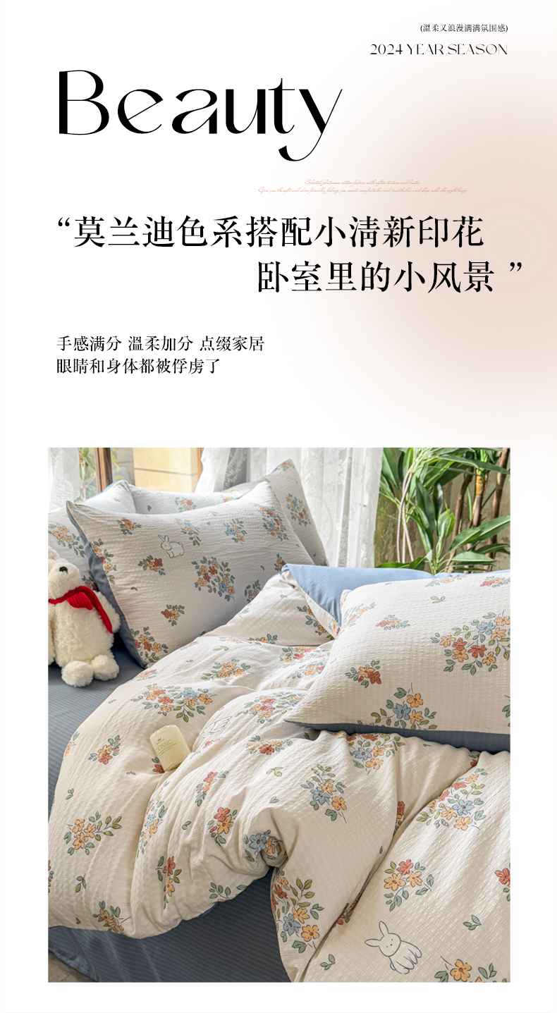 【换季焕新 母婴A类】红豆品牌旗下相思豆系列 竺纱棉四件套 A类彩竺棉面料【68年国产老品牌】