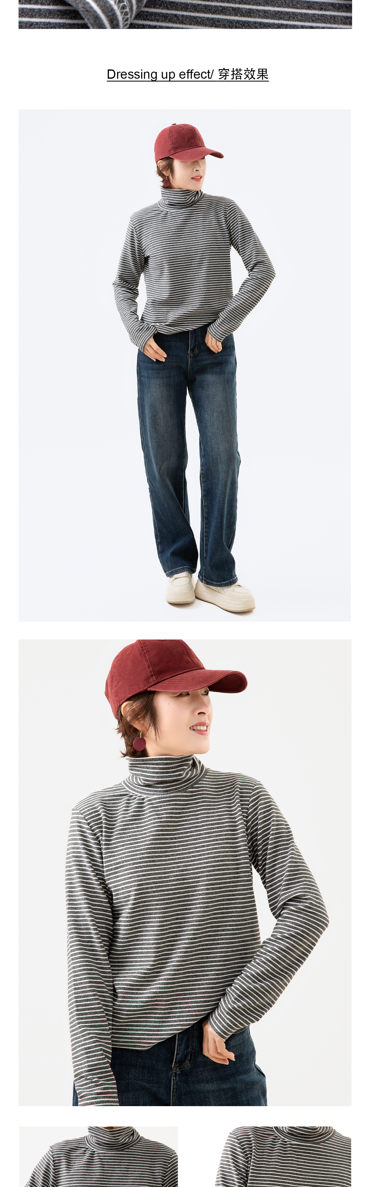 高领条纹德绒打底衫