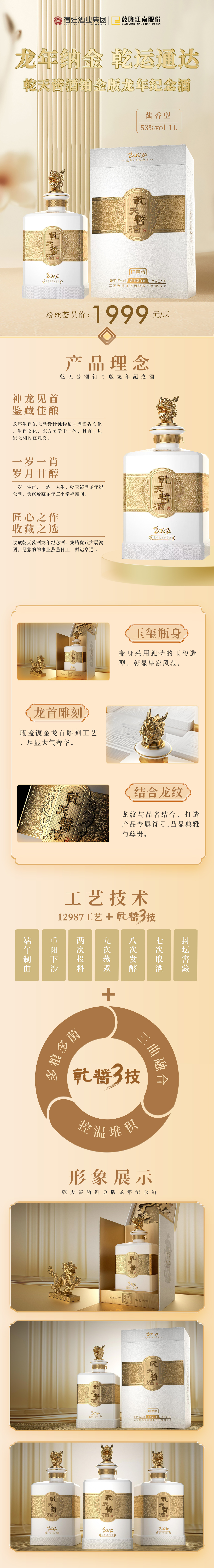 2024年乾天酱酒铂金版龙年纪念酒 53度 酱香型 1L/坛