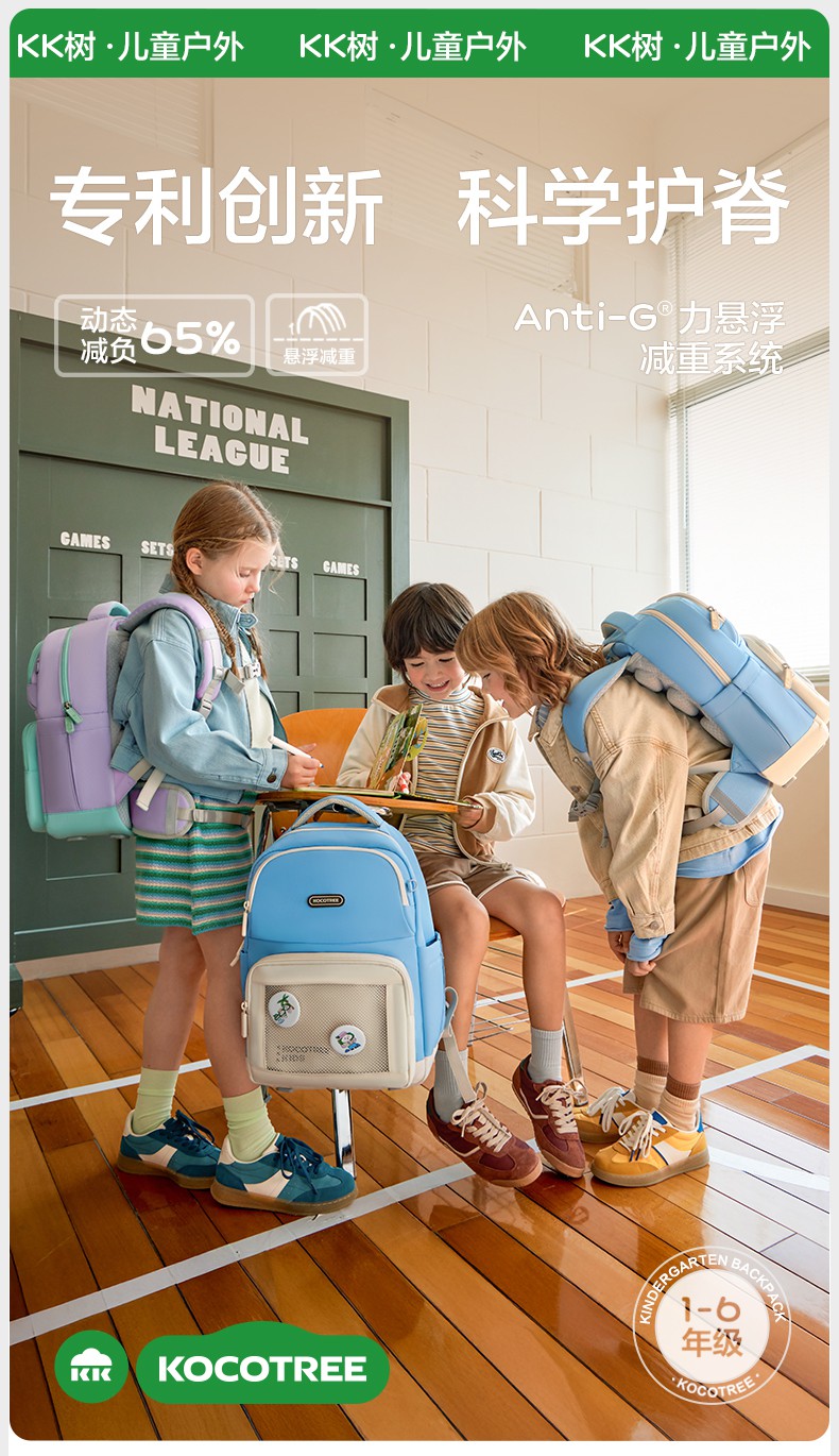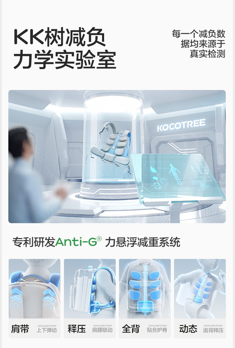 KK树悬浮小学生书包男童女孩一到三六年级减负护脊儿童双肩包超轻领航者网舱书包