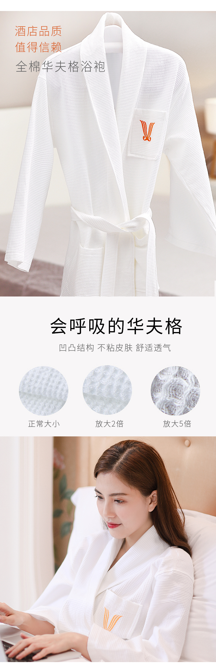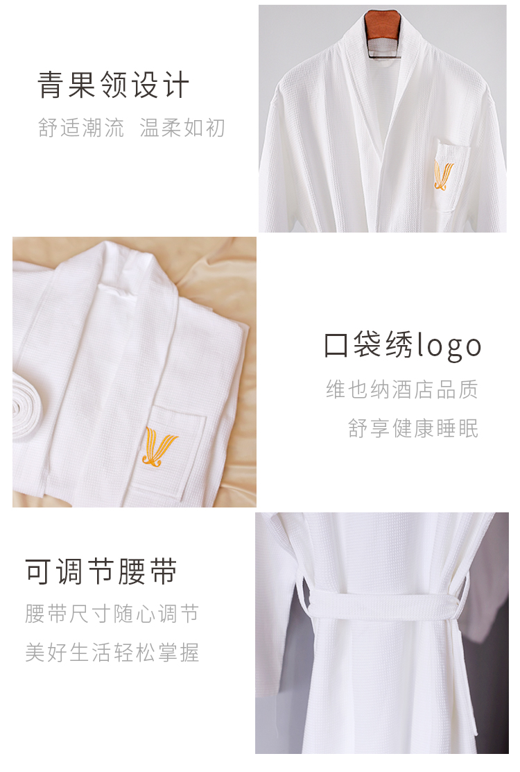 维也纳 纯棉浴袍浴衣 睡袍 会呼吸的华夫格(薄厚可选)