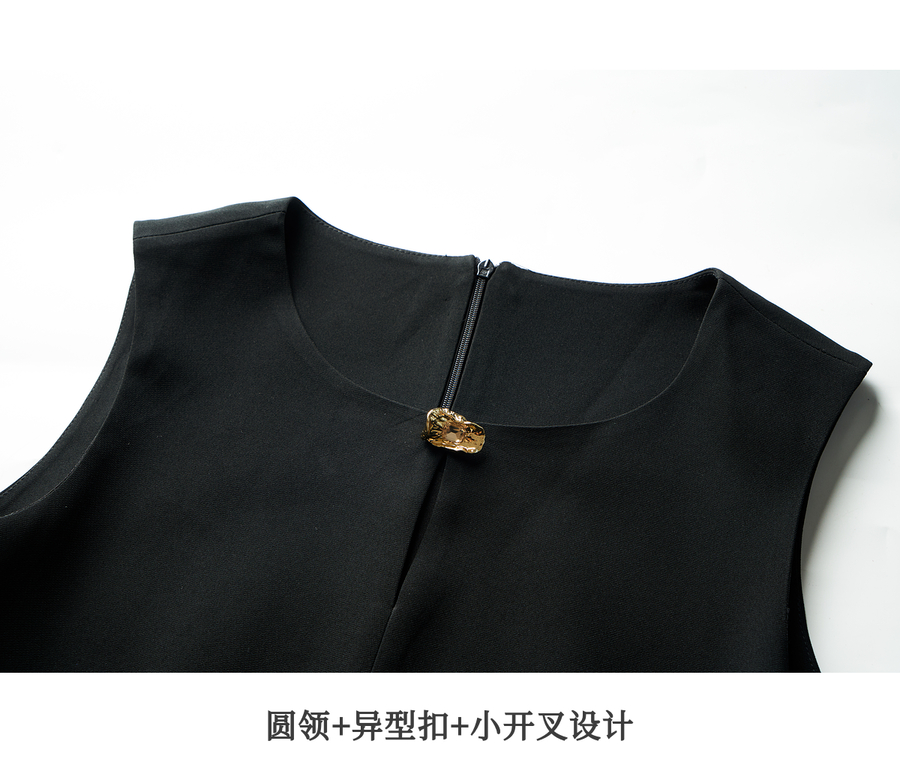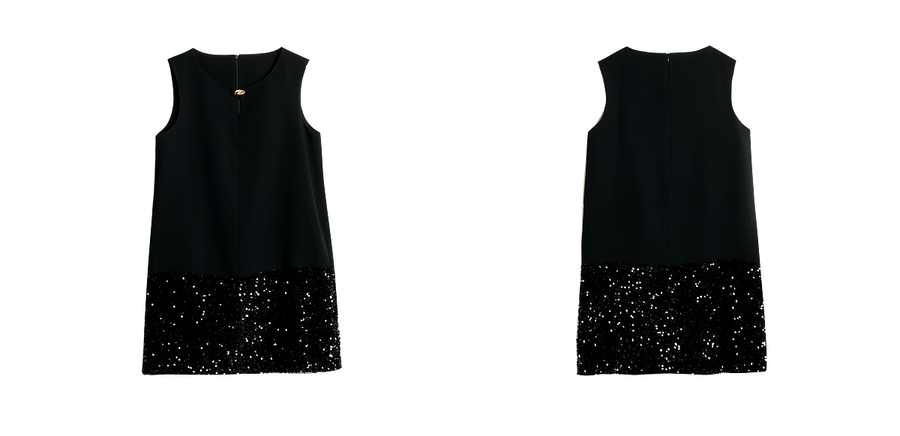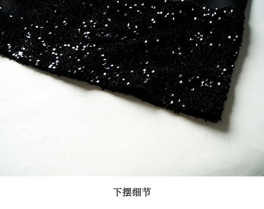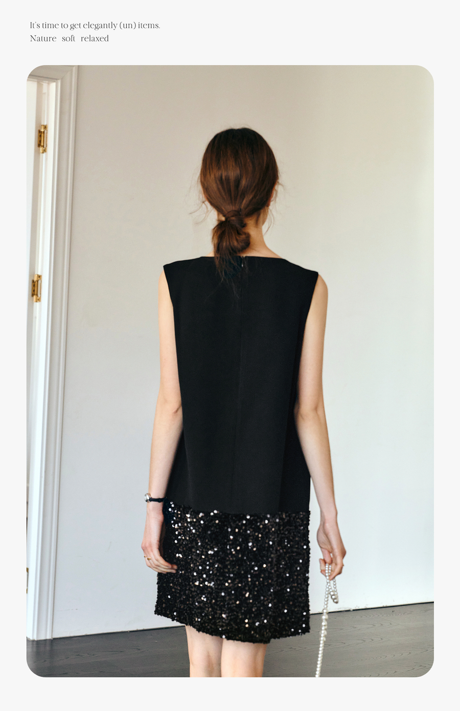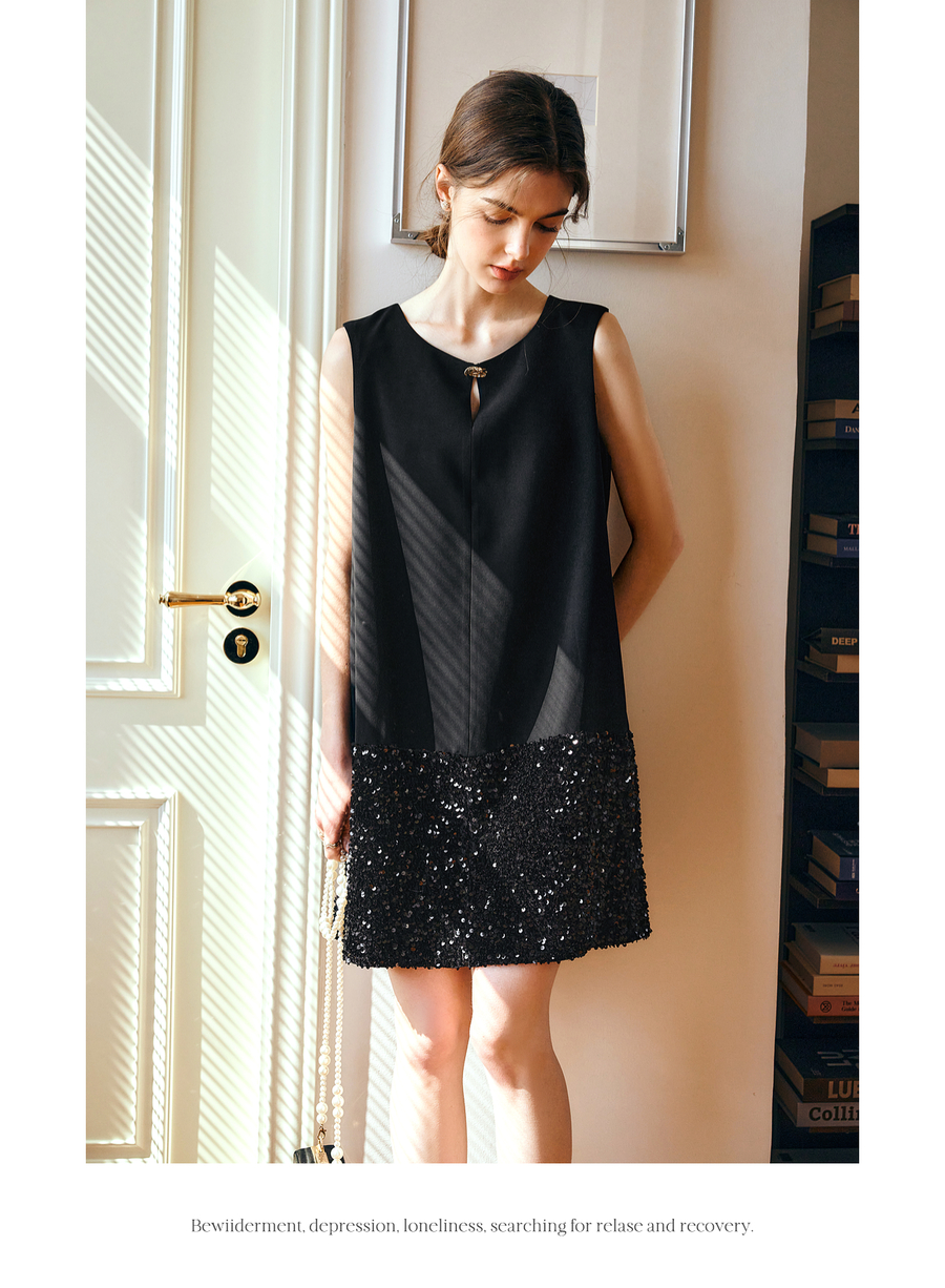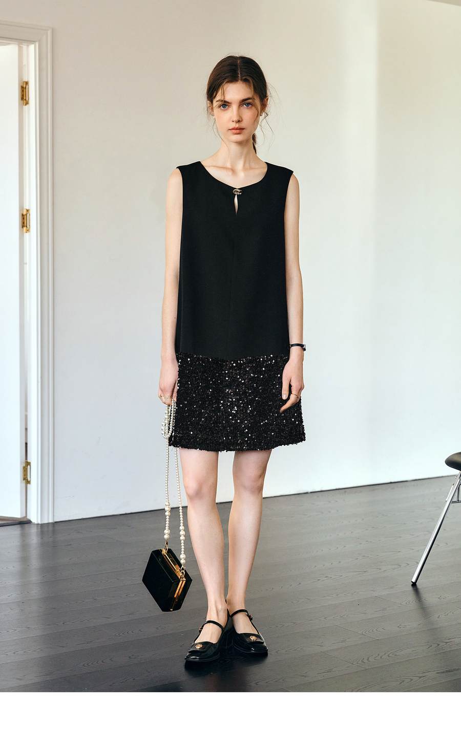 OLrain欧芮儿法式黑色连衣裙女春季2025年新款无袖拼接亮片短裙