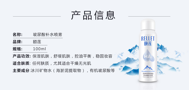 颐莲(RELLET)玻尿酸补水喷雾100ml(爽肤水 补水喷雾 保湿温和 易携带)