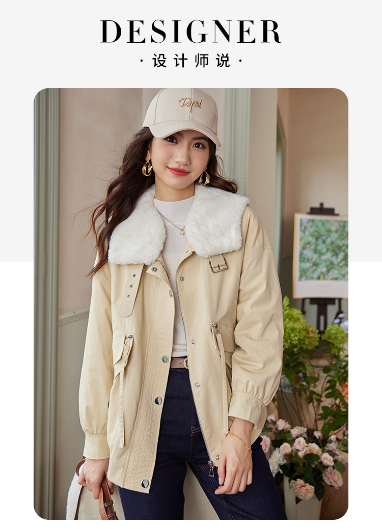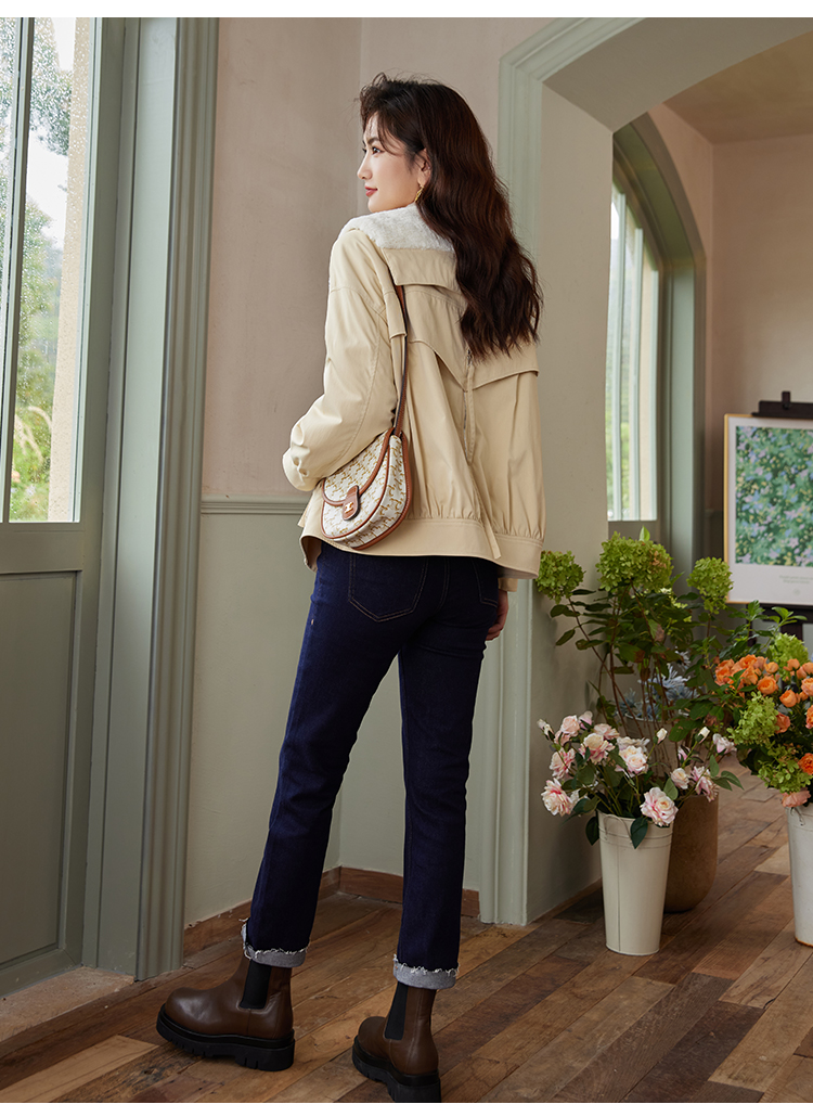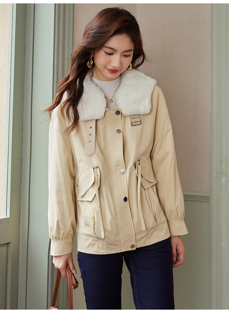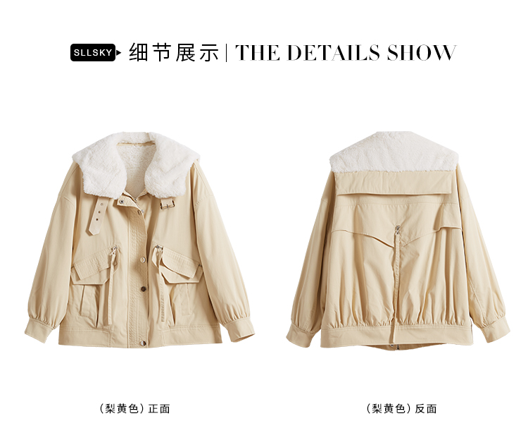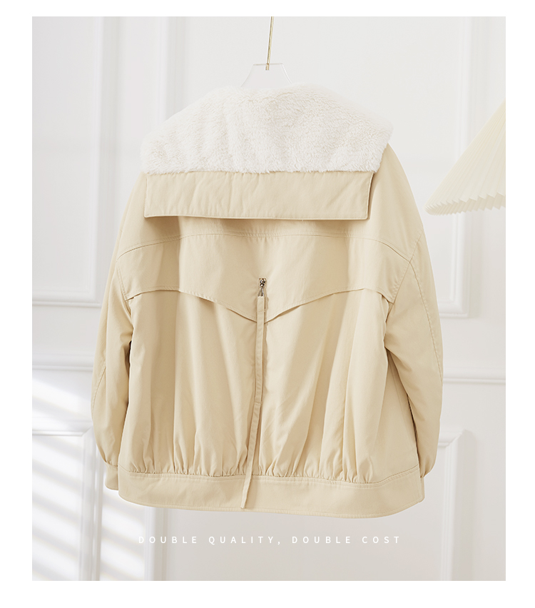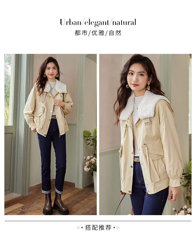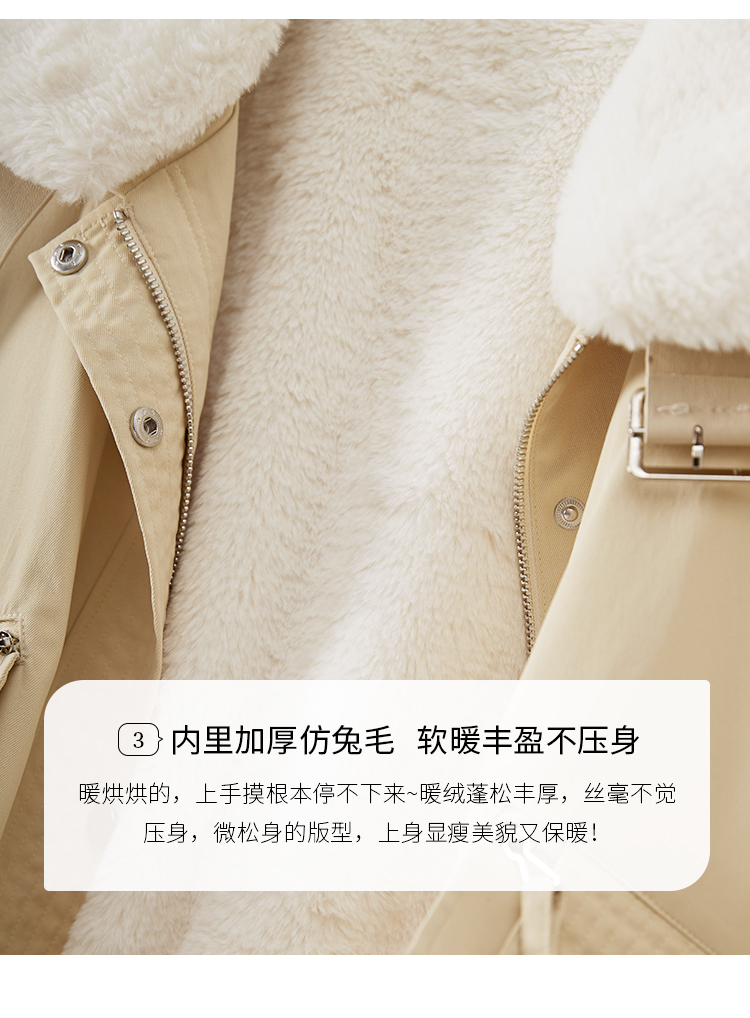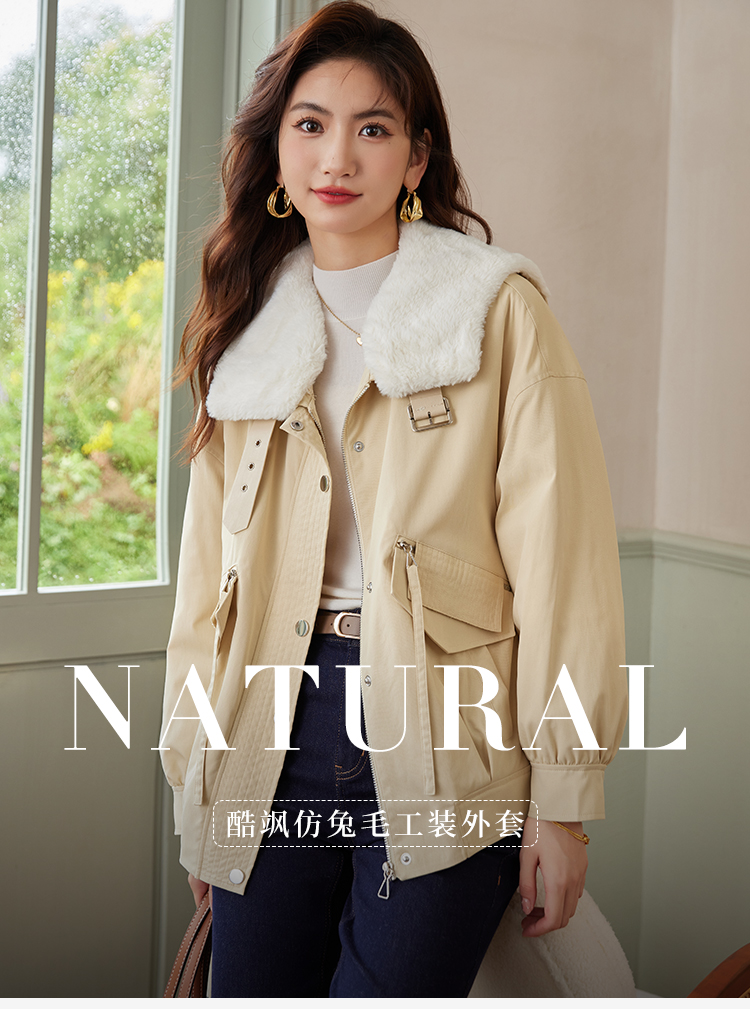 【专属特惠】熙世界酷飒仿兔毛翻领工装外套女秋冬新款内里加绒加厚短款派克服