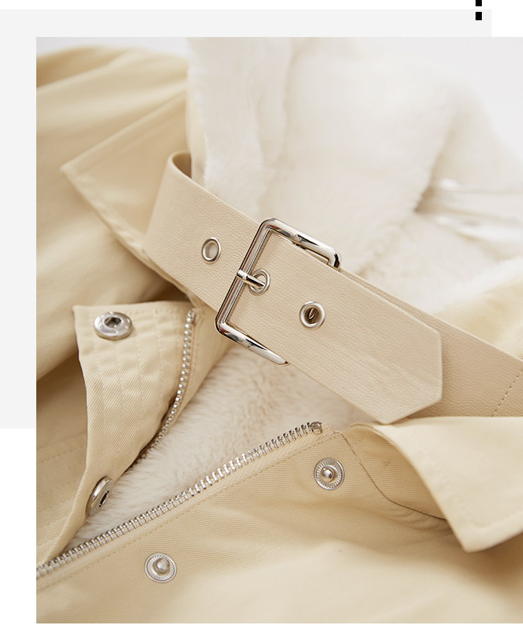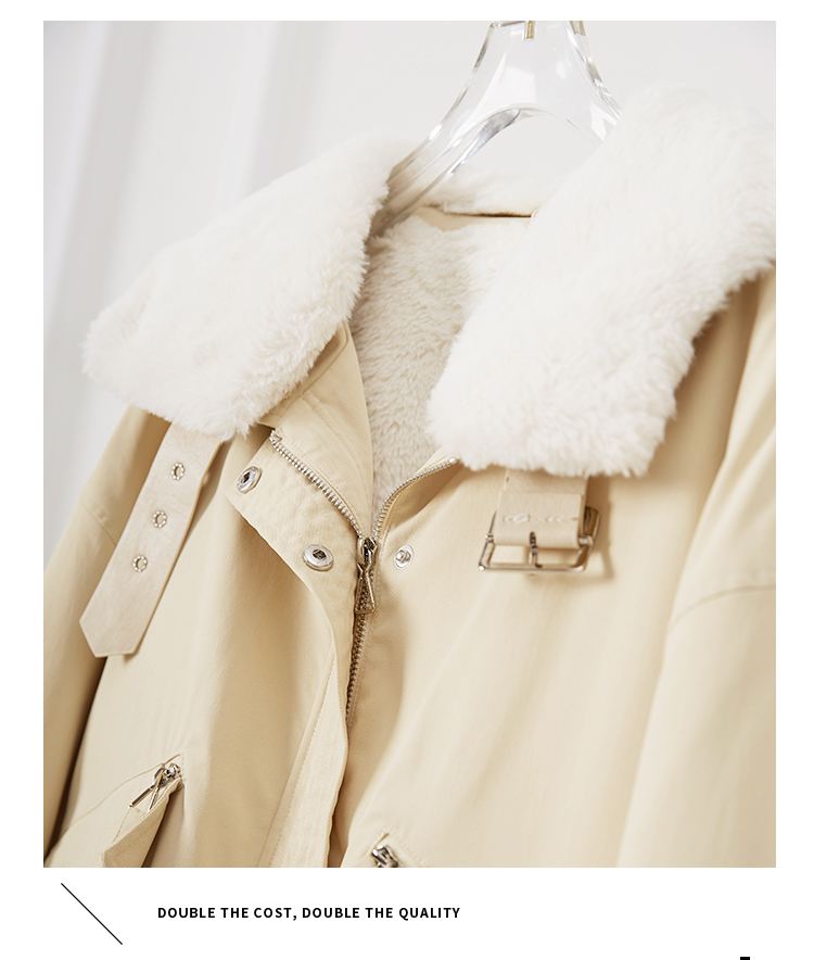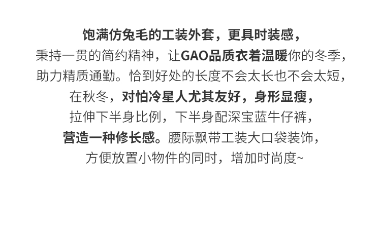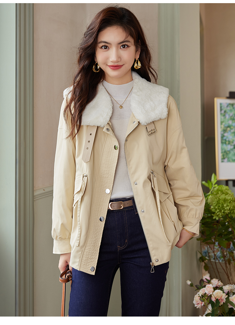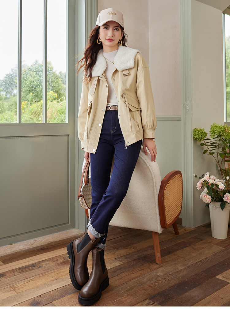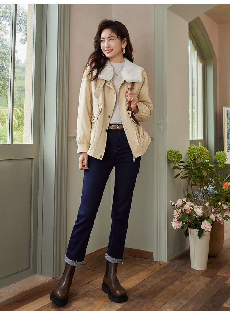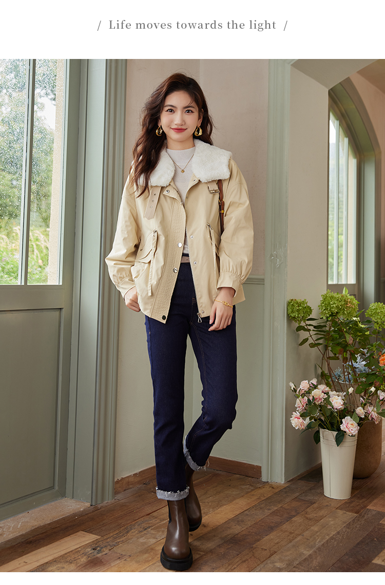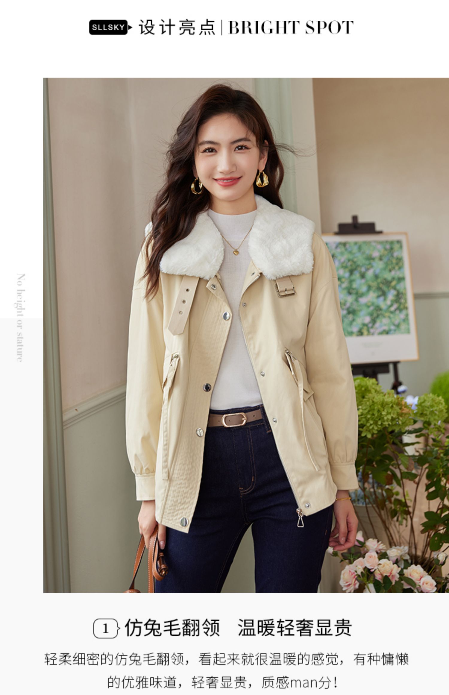 【专属特惠】熙世界酷飒仿兔毛翻领工装外套女秋冬新款内里加绒加厚短款派克服