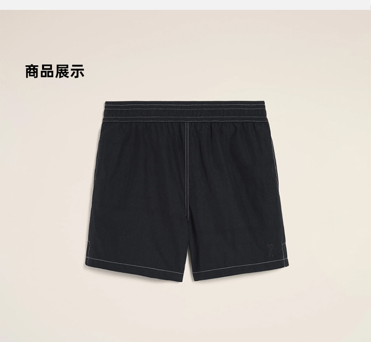 AMI 男士心形徽标刺绣休闲短裤 黑色 HBW006 PA0027 001