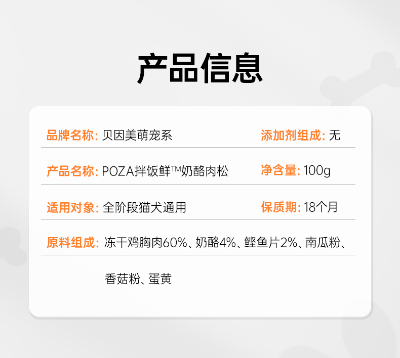 【贝因美萌宠系】 POZA宠物营养补充剂 拌饭鲜 奶酪肉松