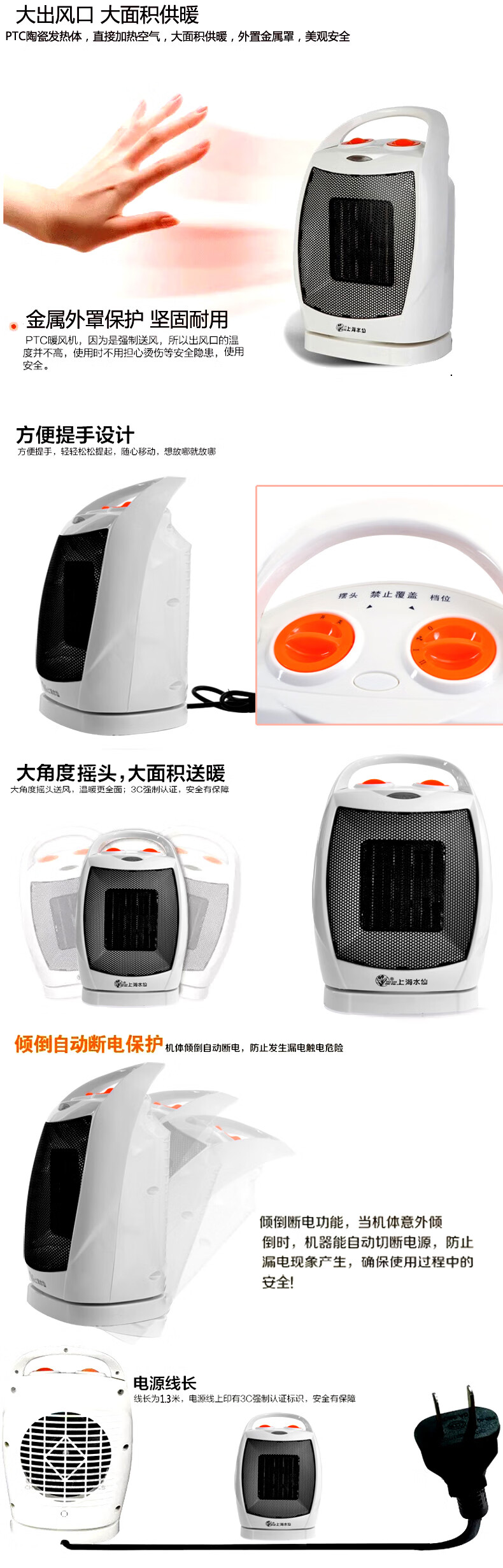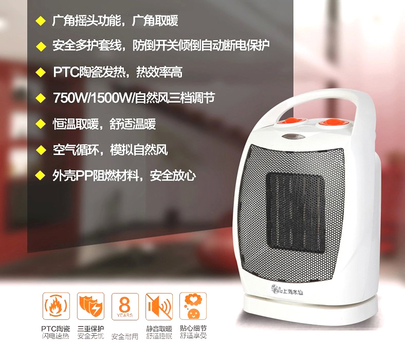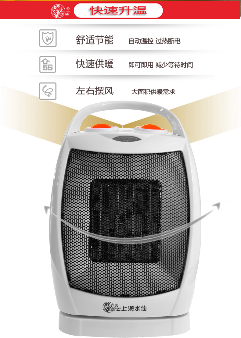 上海水仙台式暖风机150SK2 PTC取暖器电暖风机家用节能迷你小型浴室电暖器