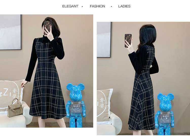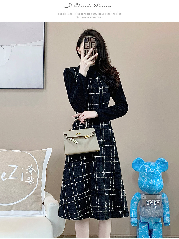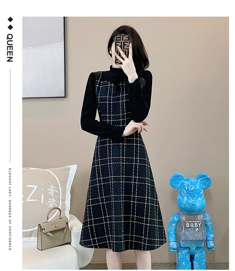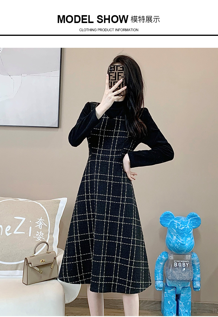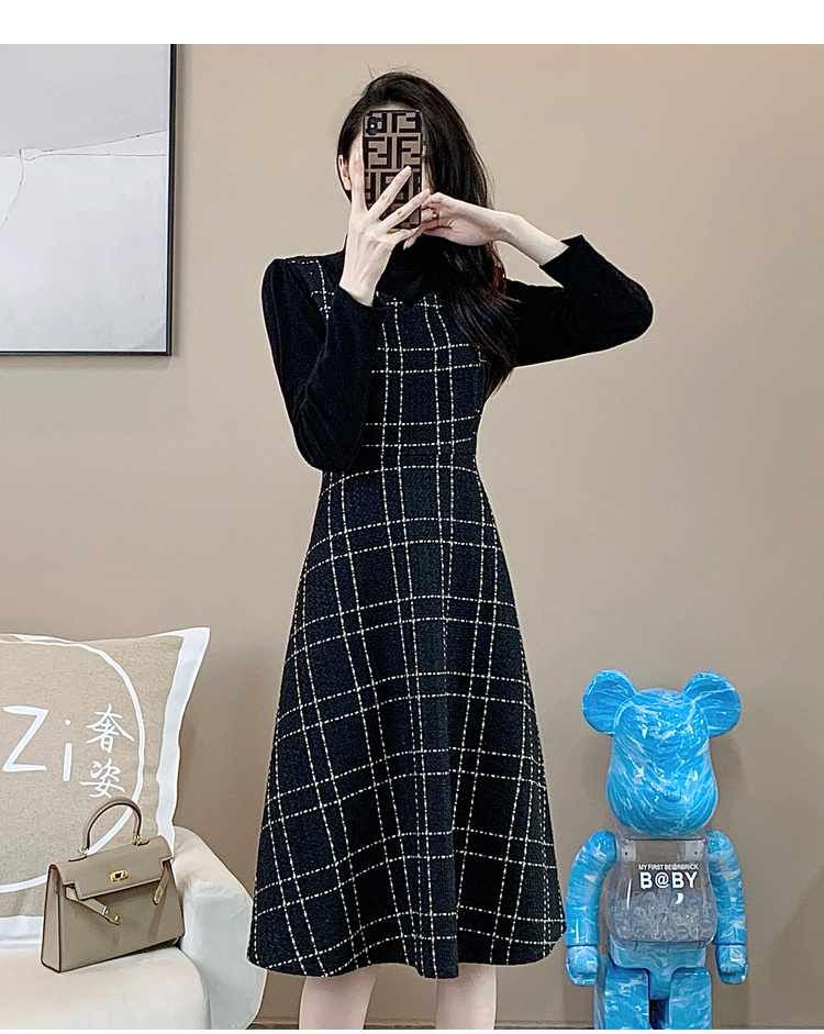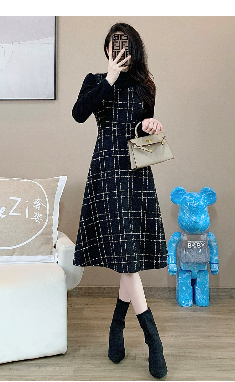 奢姿2025年冬装新款大码女装减龄格纹拼接连衣裙胖妹妹时尚裙子9924890793