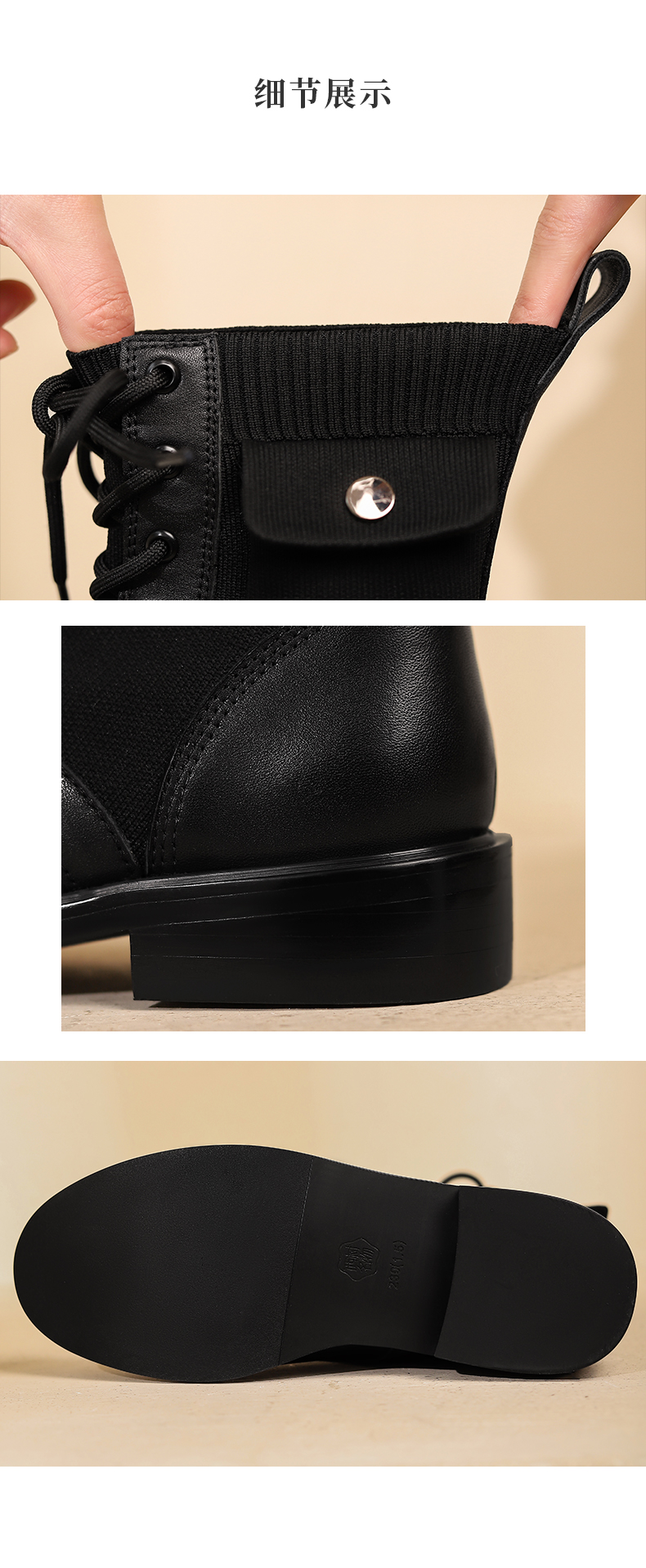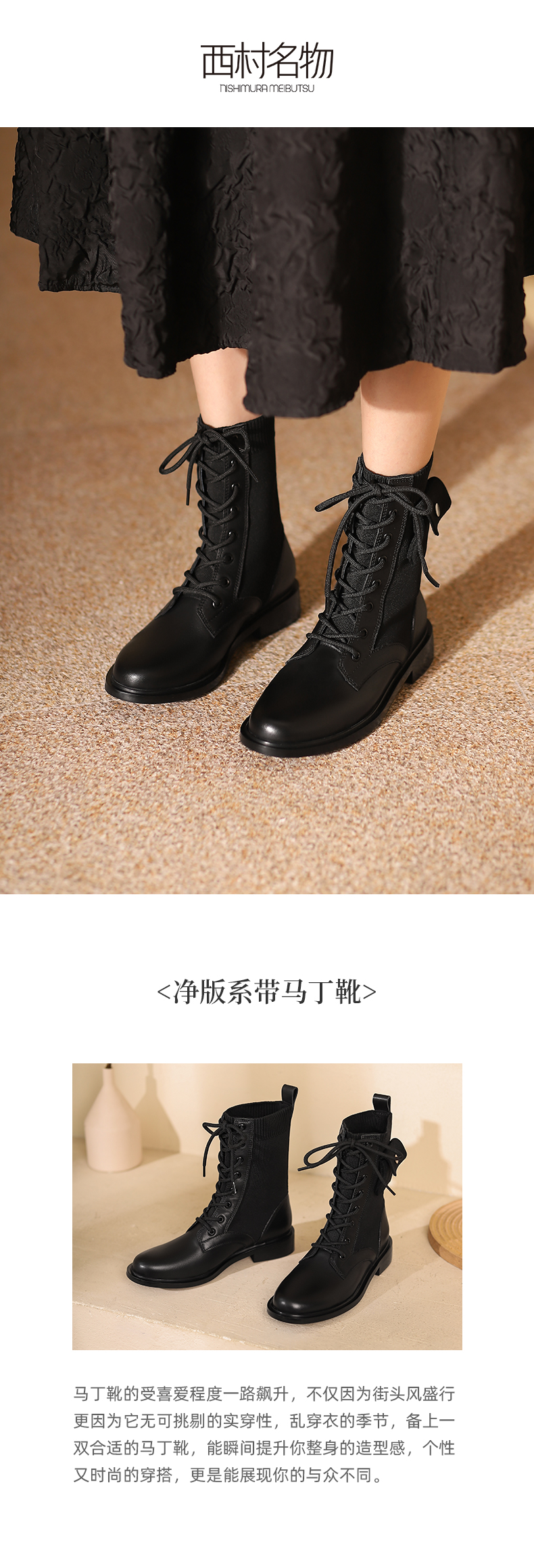 西村名物2021秋冬新款简约瘦瘦靴方跟圆头弹力袜靴女短靴X21DS46001
