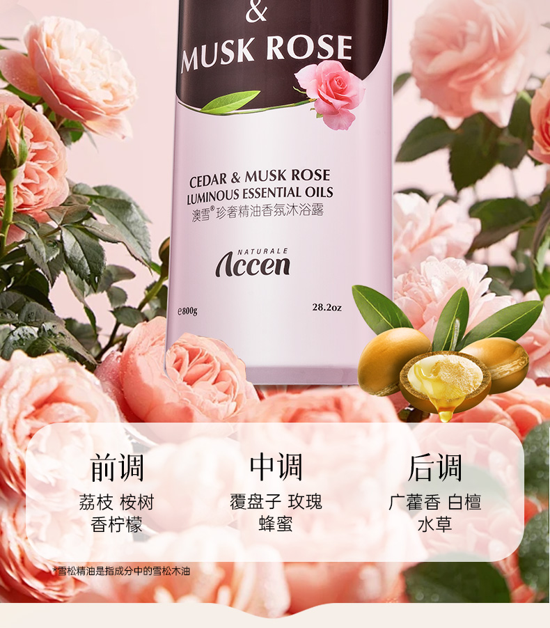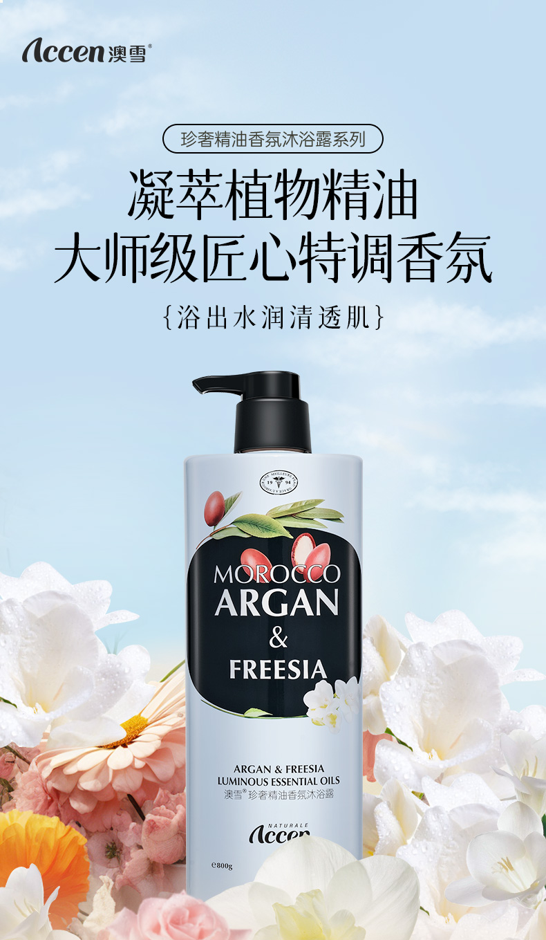 澳雪珍奢精油香氛沐浴露800g*2(阿甘油&小苍兰+玫瑰雪松)