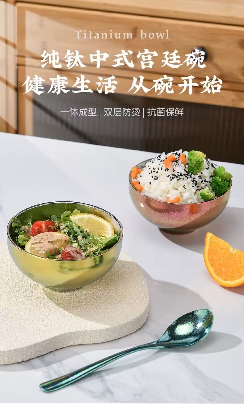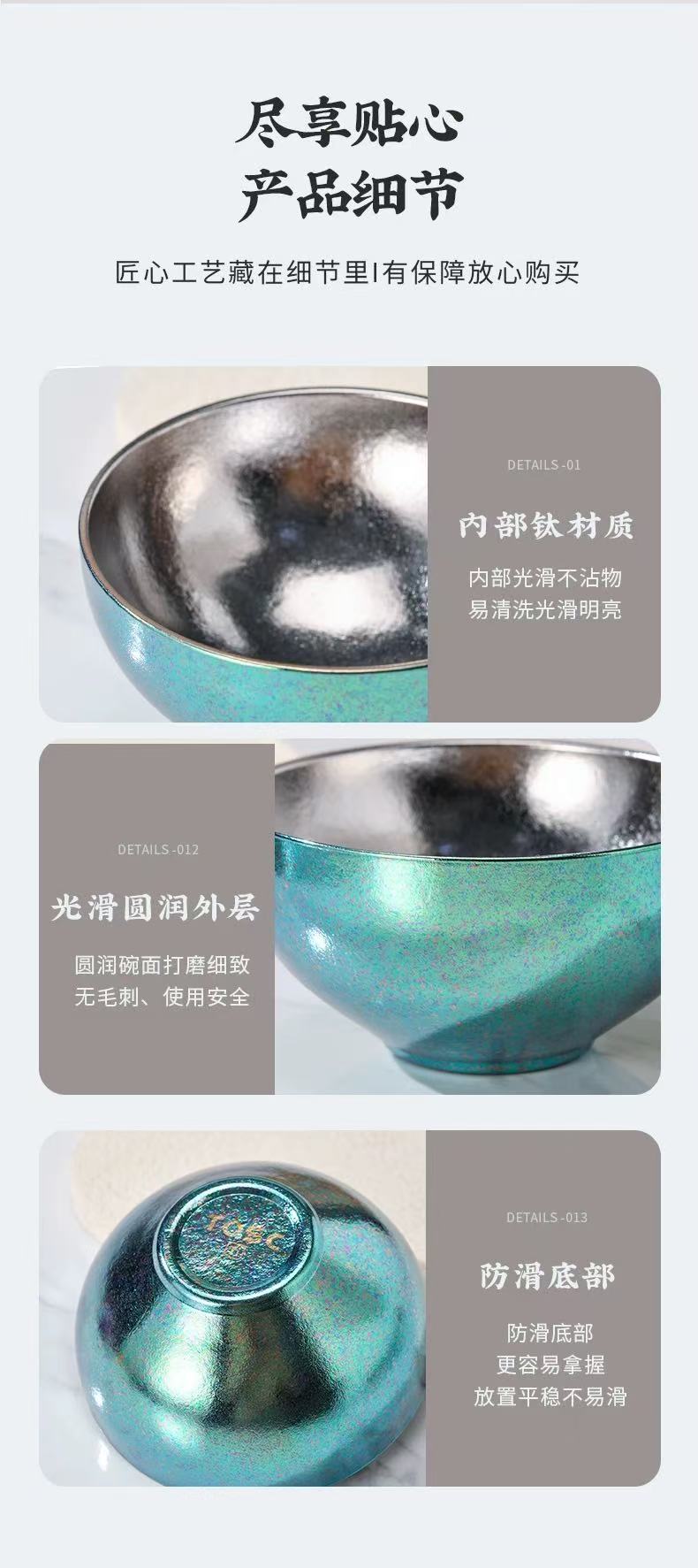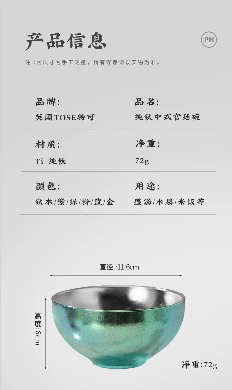 英国TOSC特可新款中式宫廷碗99.9%纯钛300ML钛碗双层防烫冰花内银外彩