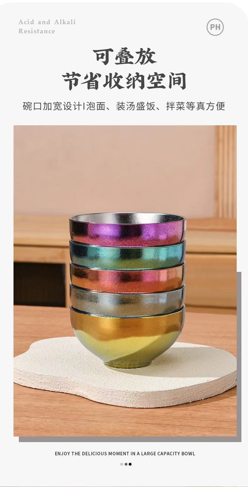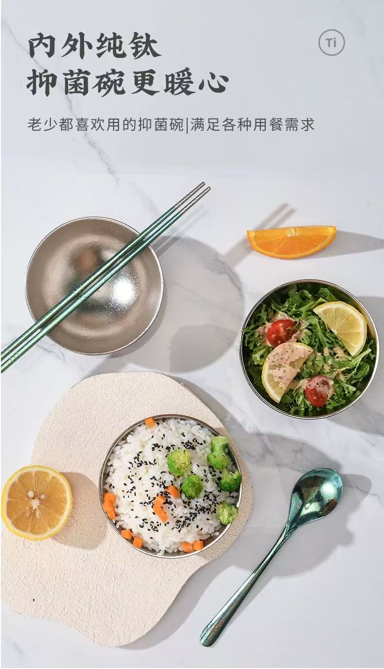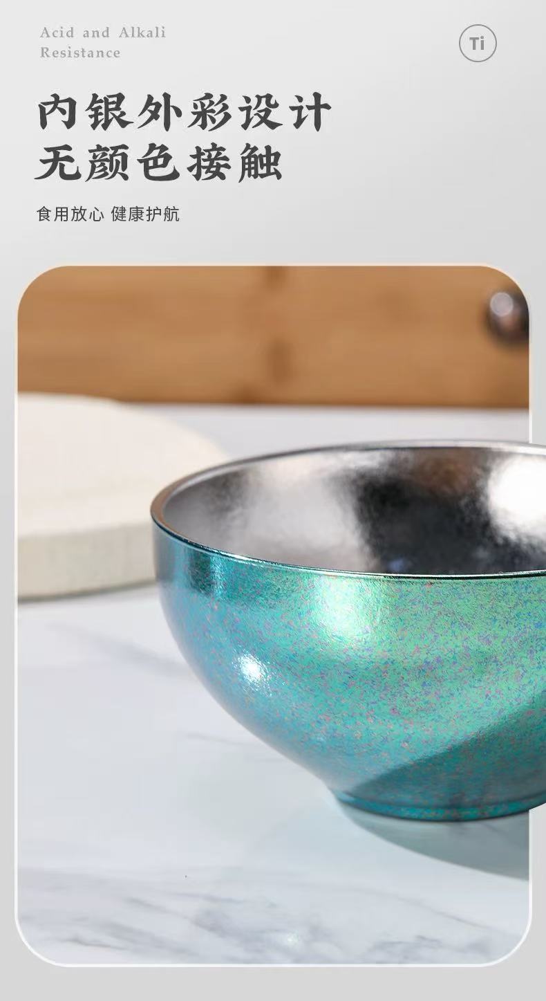 英国TOSC特可新款中式宫廷碗99.9%纯钛300ML钛碗双层防烫冰花内银外彩
