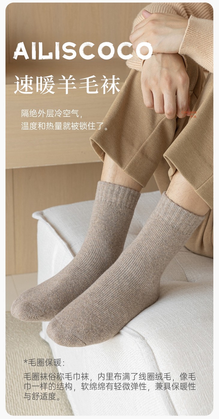 这个冬天给“足”舒适【AILISCOCO速暖羊毛袜】 棉羊毛混纺 不扎肉不臭脚 加厚男女款