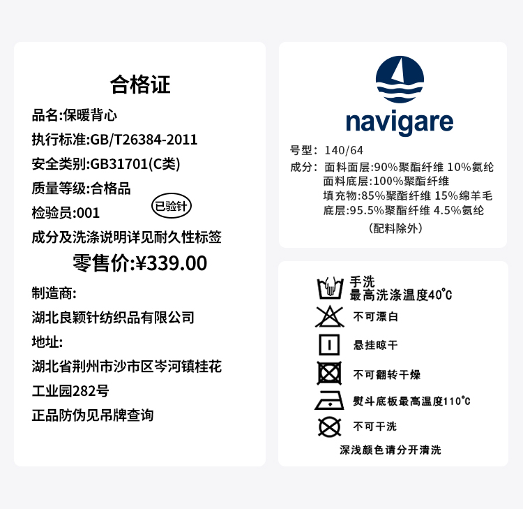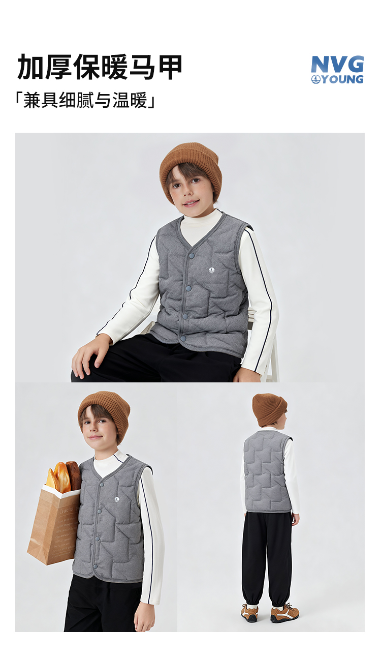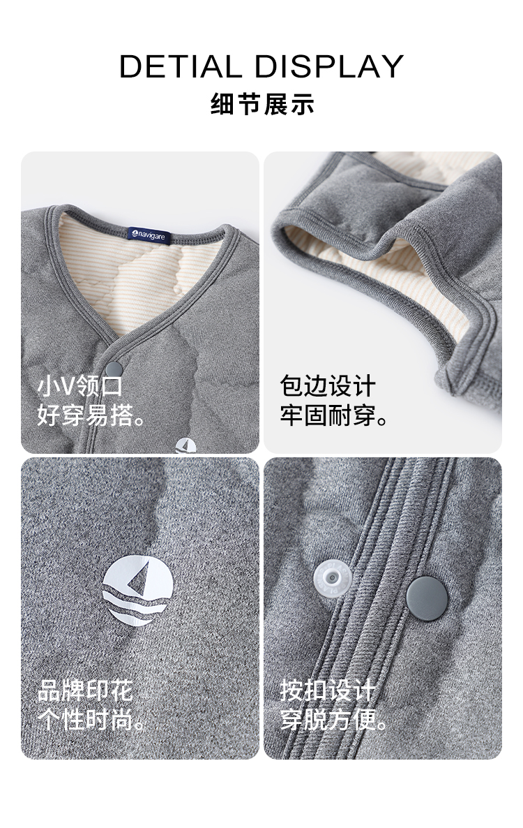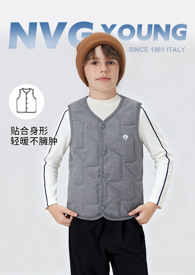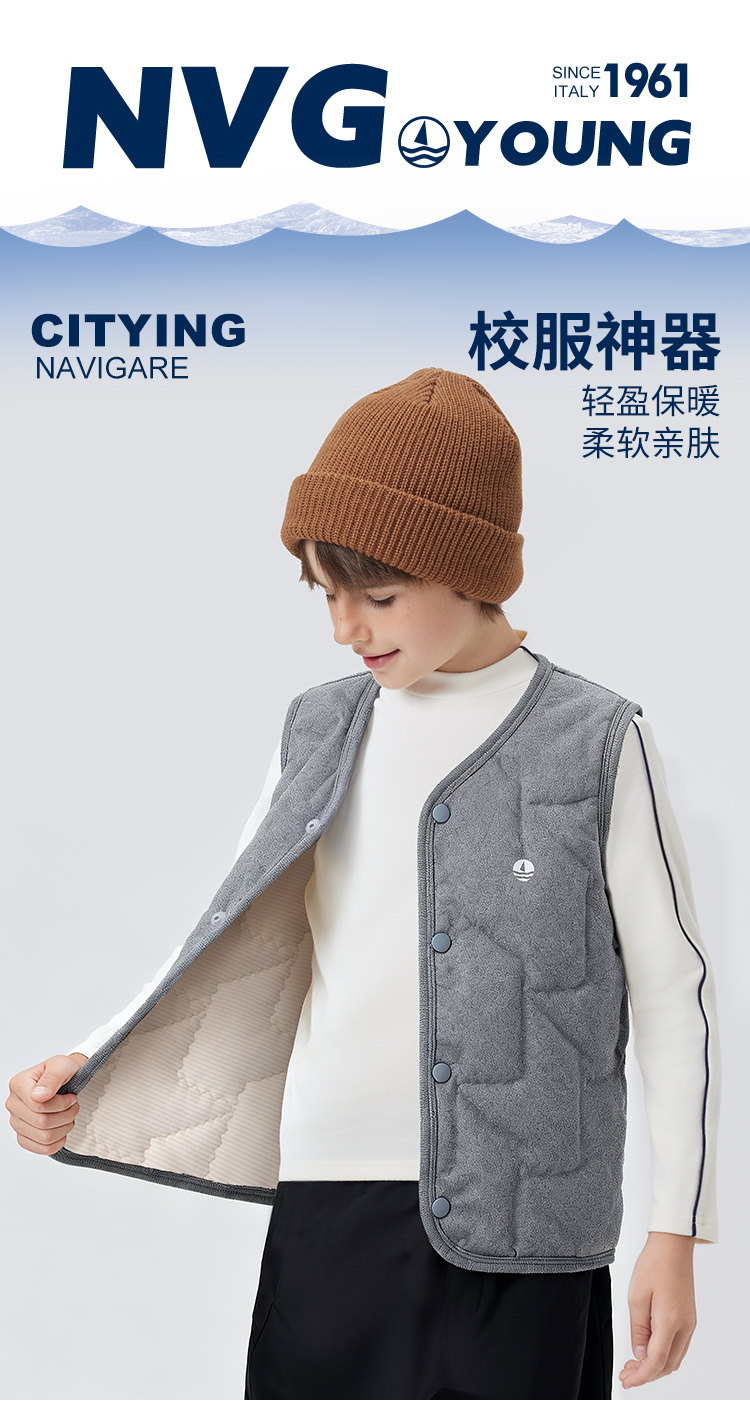 【纳维凯尔】【120-150】【含绵羊毛】意大利小帆船童装儿童夹棉保暖马甲