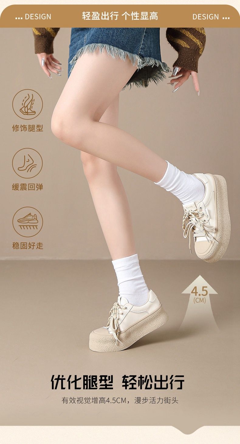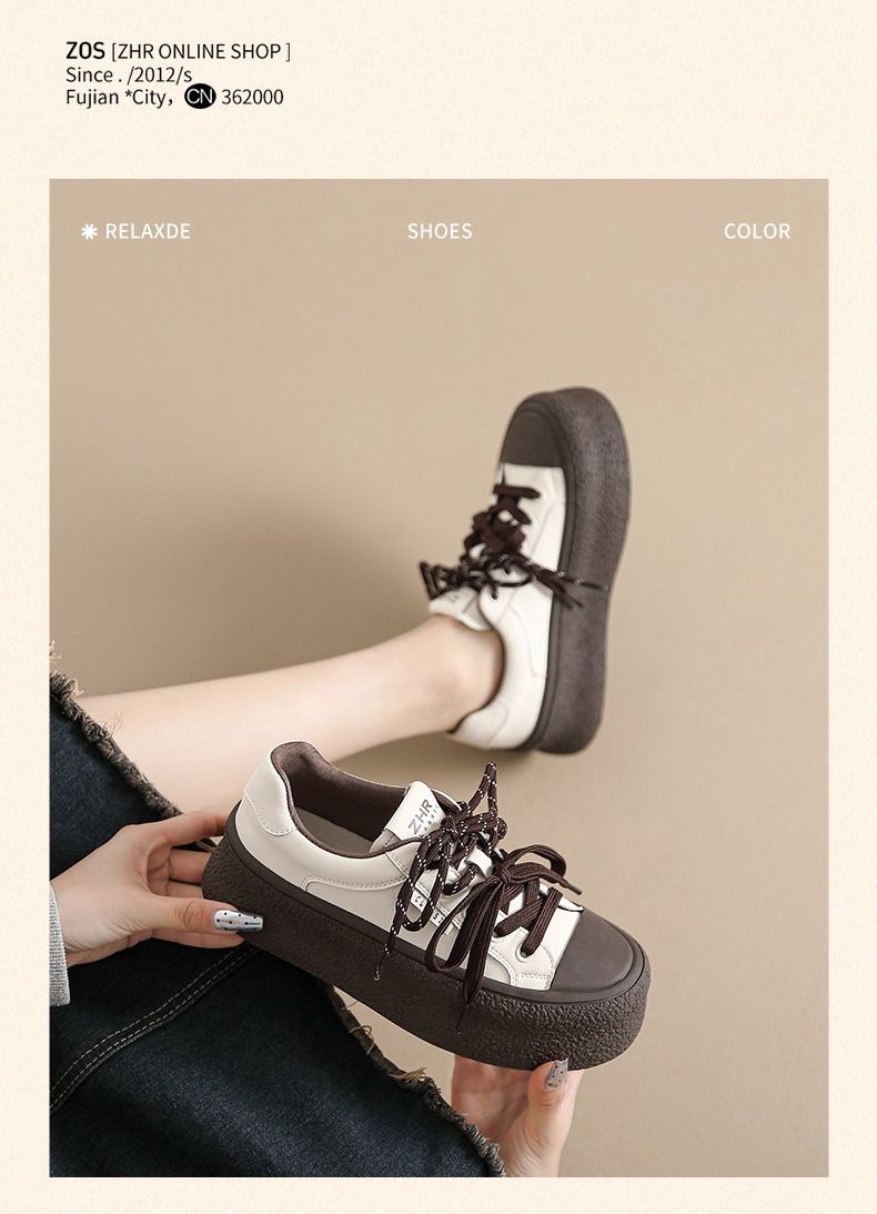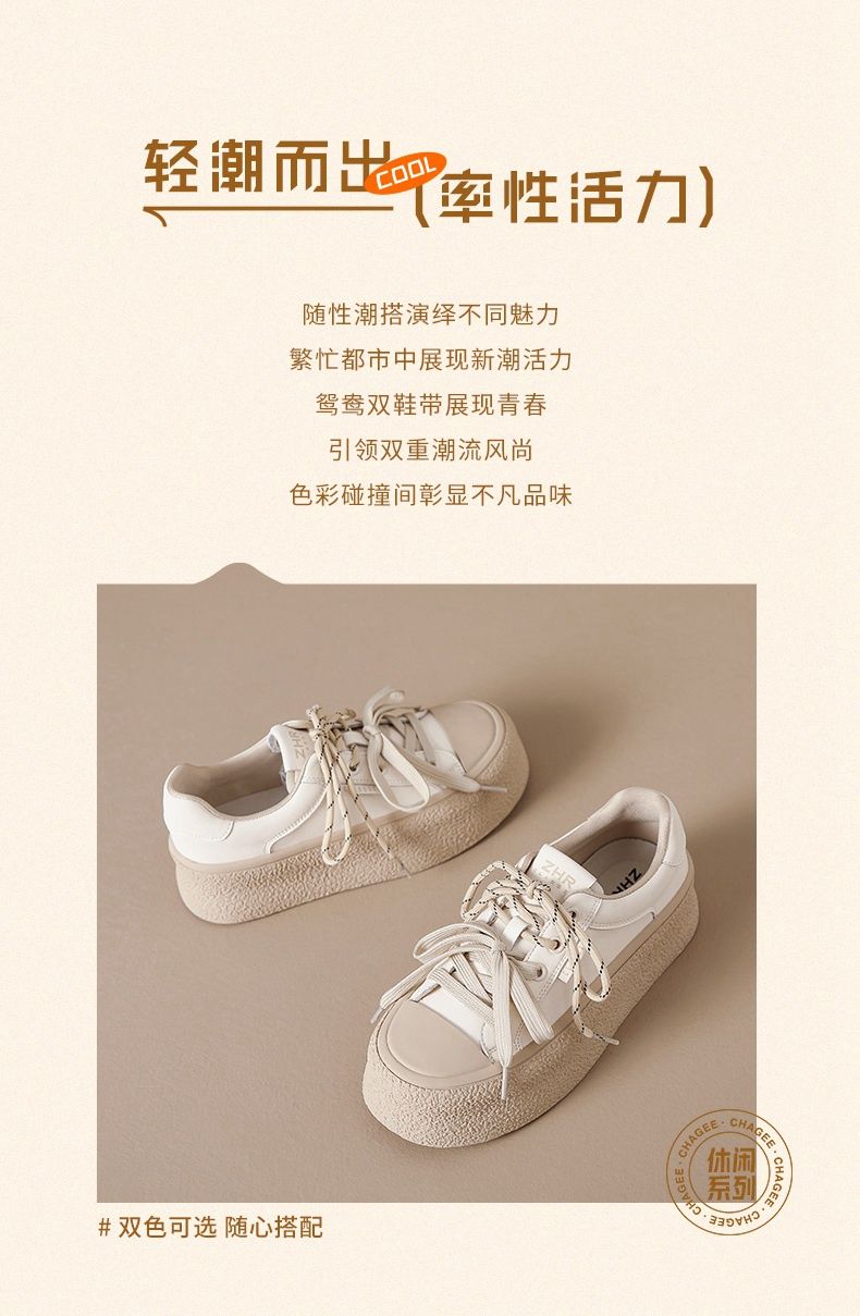 ZHR则则厚底双鞋带休闲鞋软底耐磨女鞋松糕底2024秋ins百搭休闲鞋