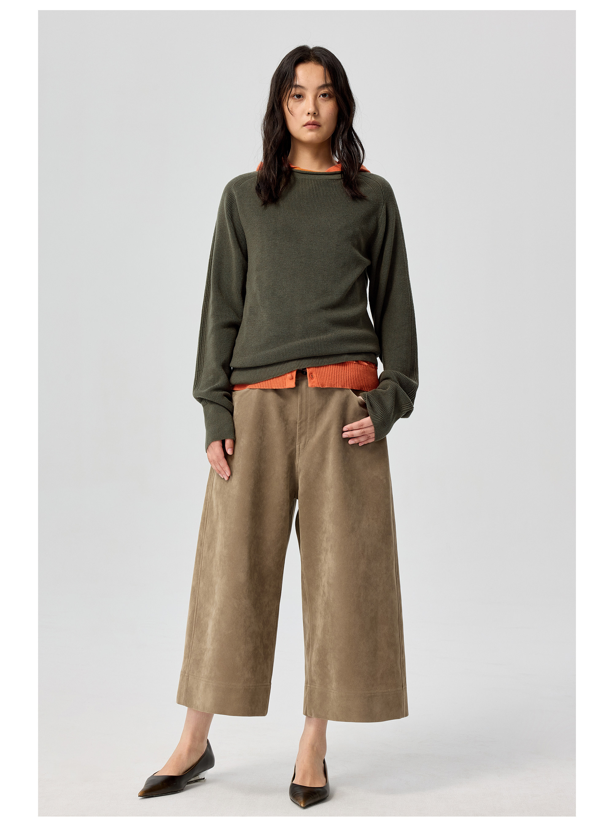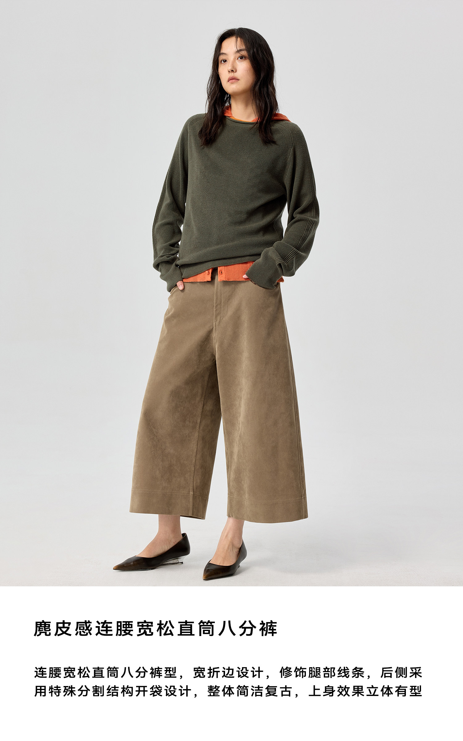 Simple Project/K25159/麂皮感连腰宽松直筒八分裤