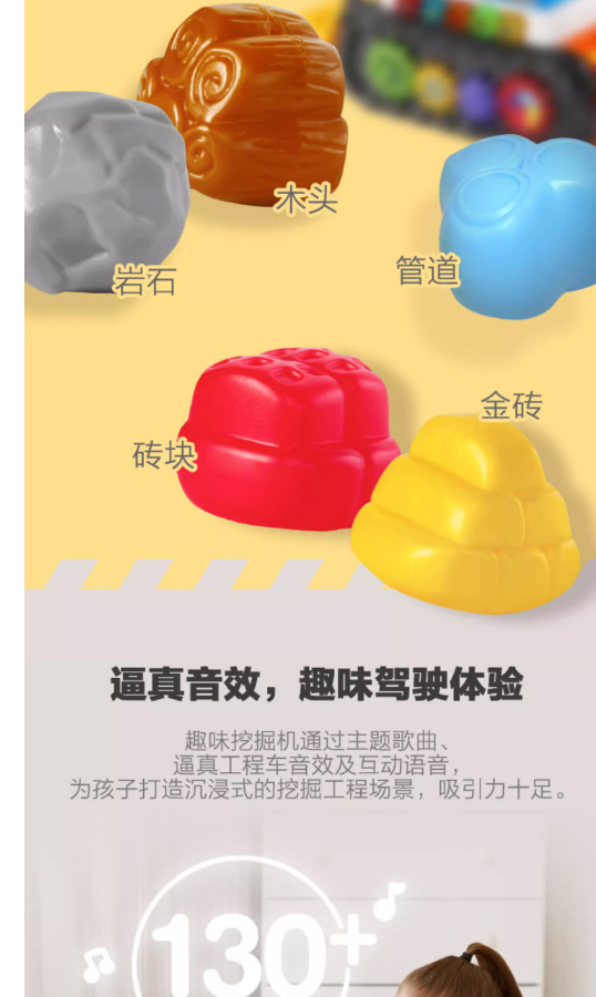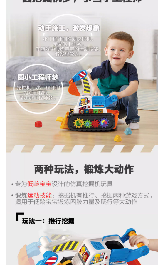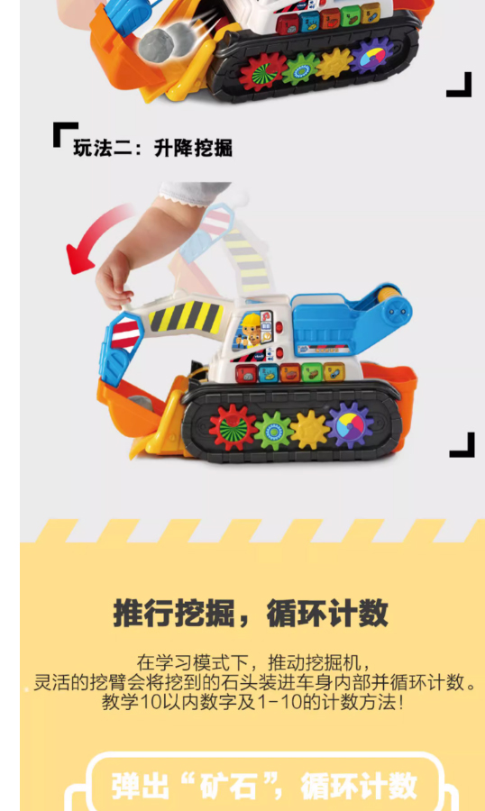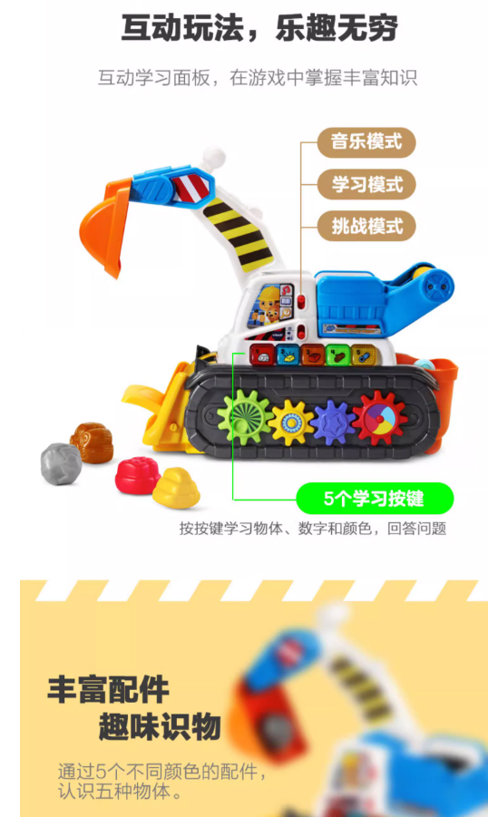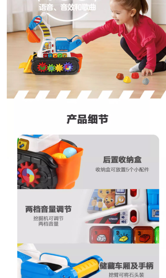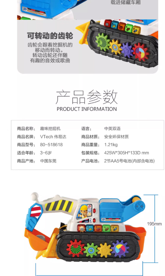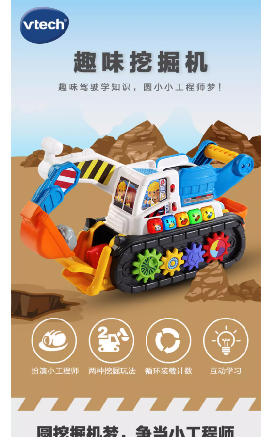 18月+ | VTech伟易达 趣味挖掘机 工程车车模玩具车男孩挖土机齿轮工地学习模型