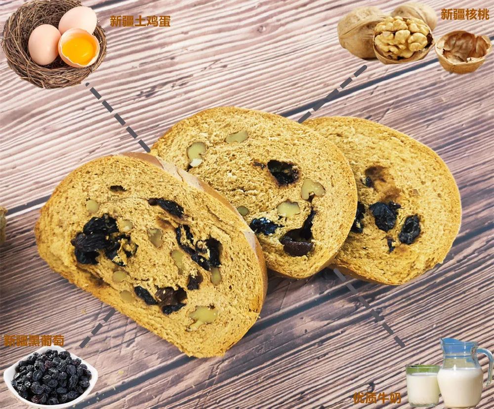 还加黑加仑葡萄、新疆核桃仁、鸡蛋、牛奶