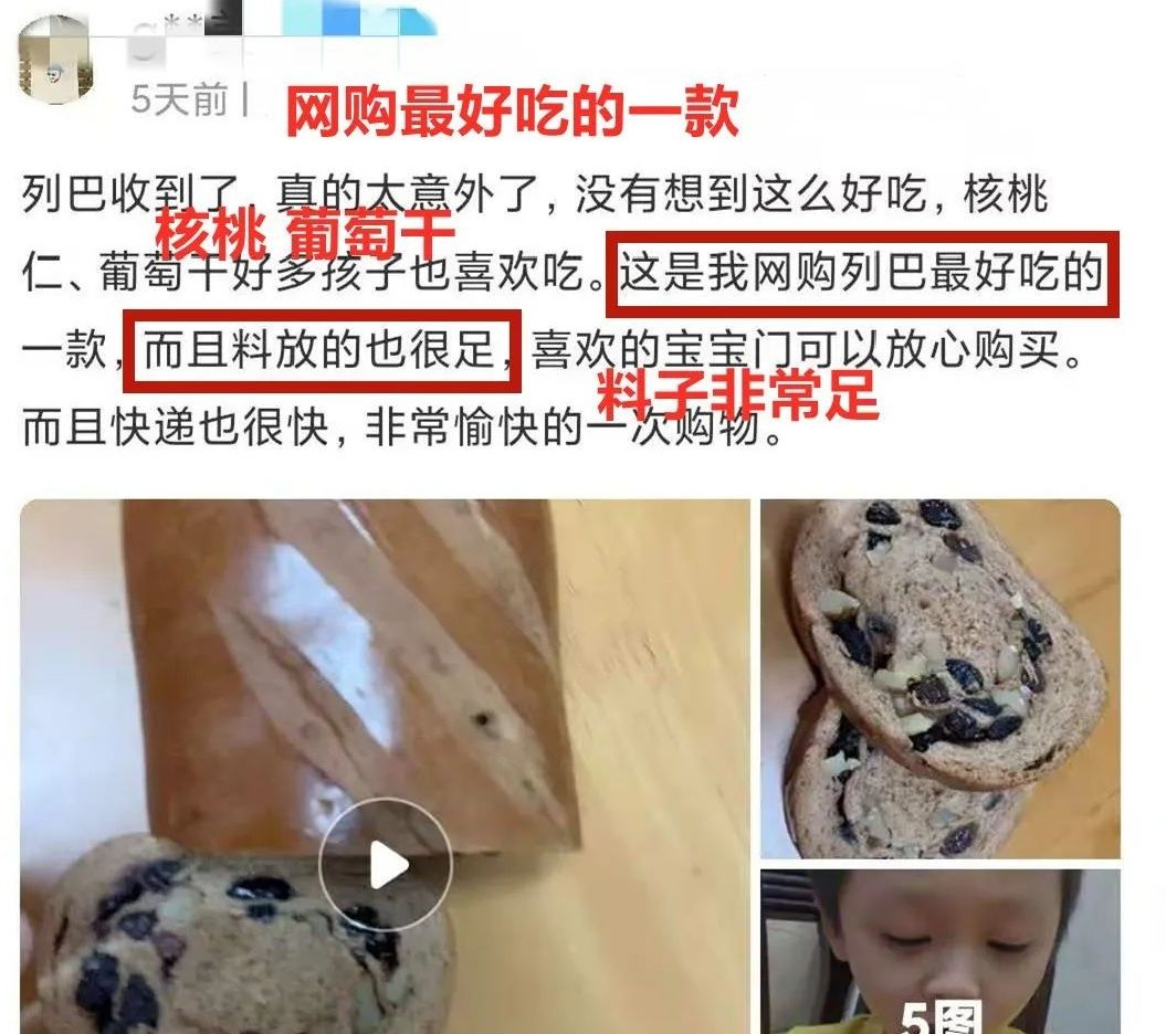 相比市场上的普通面包疏松、比较轻,一个黑麦大列巴,足足有400-500g,相当于两个iphone手机,除了黑麦粉、黑麦粉配料外,还加黑加仑葡萄、新疆核桃仁、鸡蛋、牛奶,黑麦大列巴的营养堪称一绝!用新西兰进口的牛奶和新疆的土鸡蛋来代替,不添加防腐剂、人工色素等化学添加剂,所以这个列巴既有了传统大列巴的紧致,也有松软奶香的口感,非常好吃!