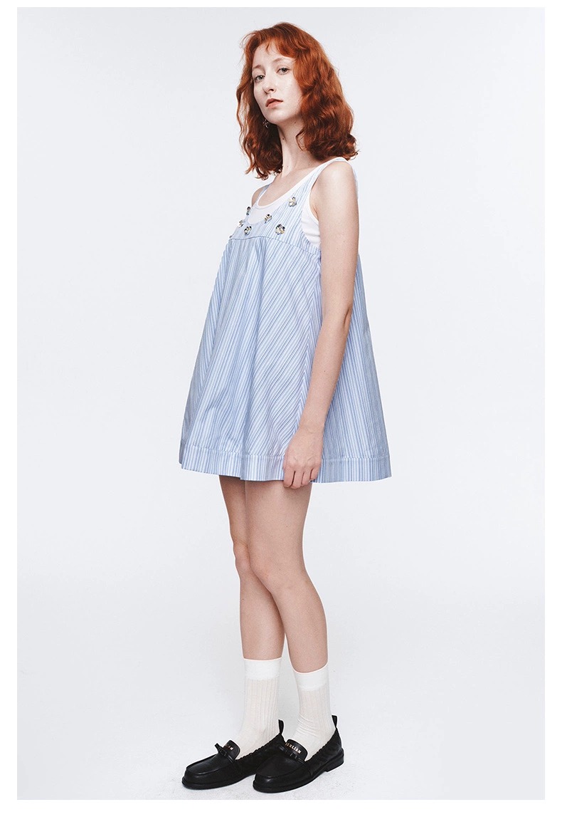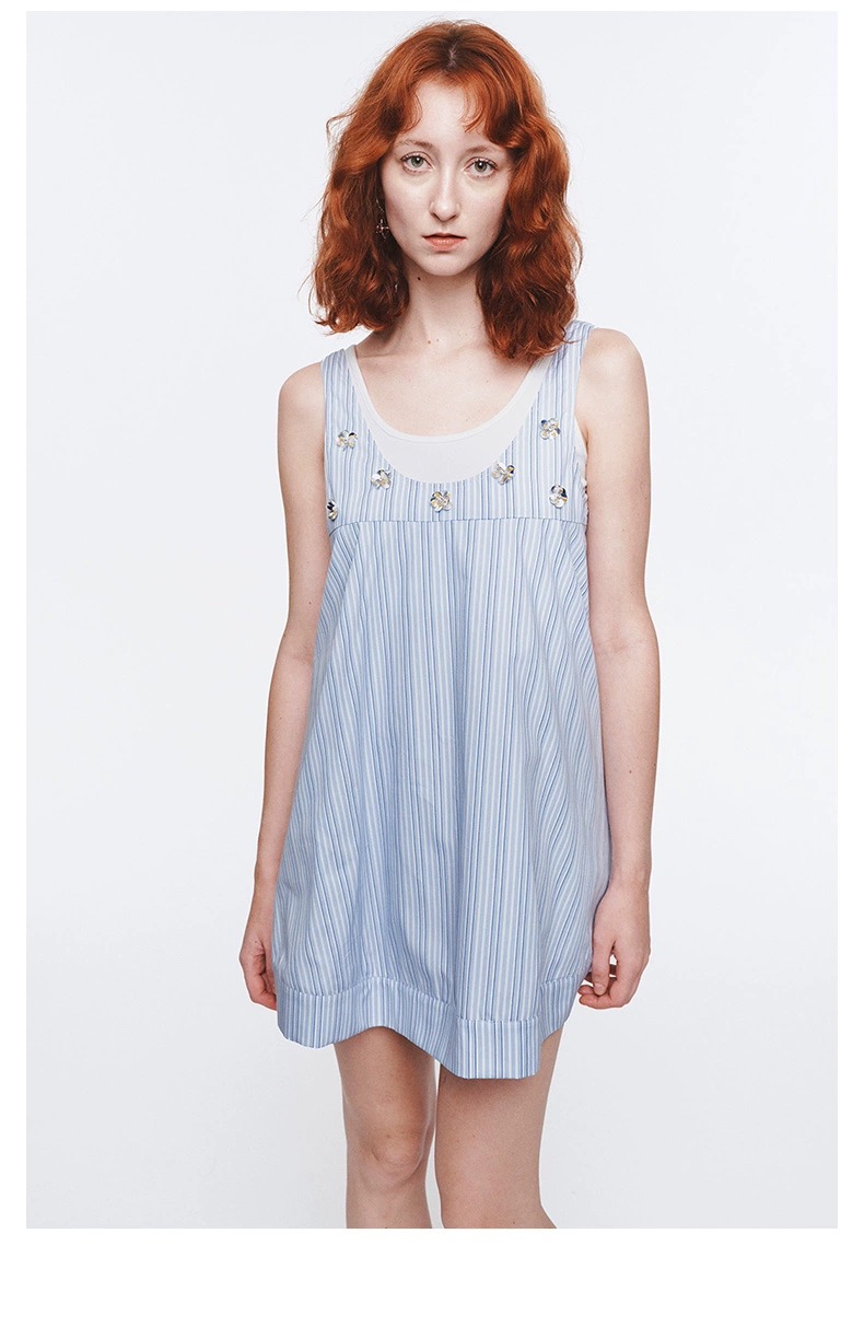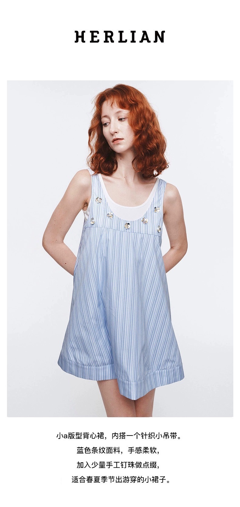 HERLIAN 2025年春季女士两件套手工立体花背心连衣裙