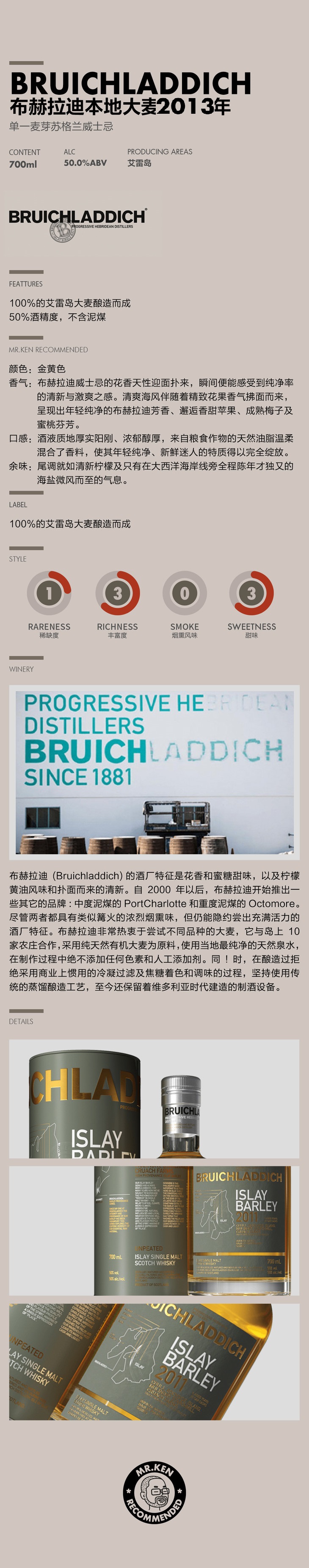 布赫拉迪(Bruichladdich)本地大麦2013年单一麦芽苏格兰威士忌