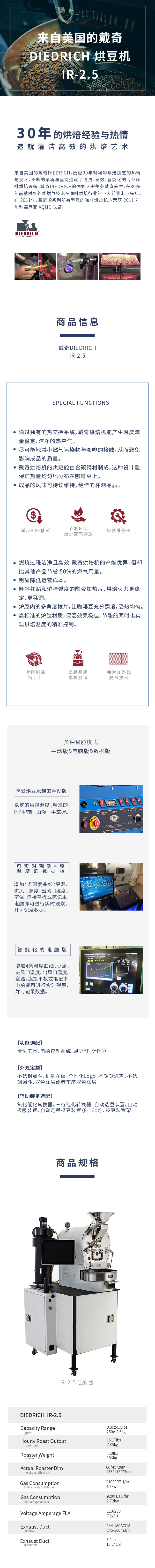 【咖啡设备】 戴奇 烘豆机 Diedrich IR-2.5A电脑版 /白色/煤气版 【此设备仅用于商业用途】