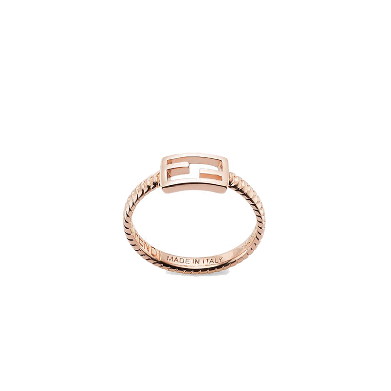 戒指饰有网状链和FF Baguette图案。由玫瑰金金属制成。