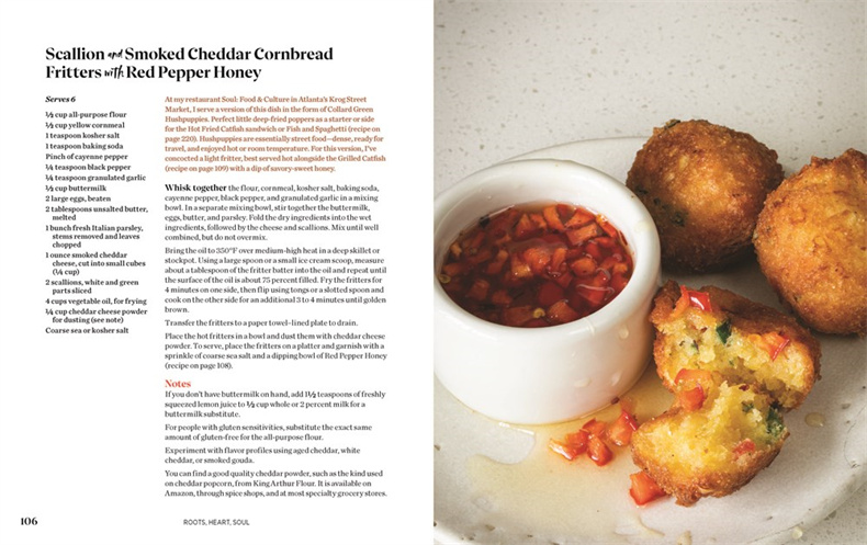 •Scallion and Smoked Cheddar Cornbread Fritters with Red Pepper Honey