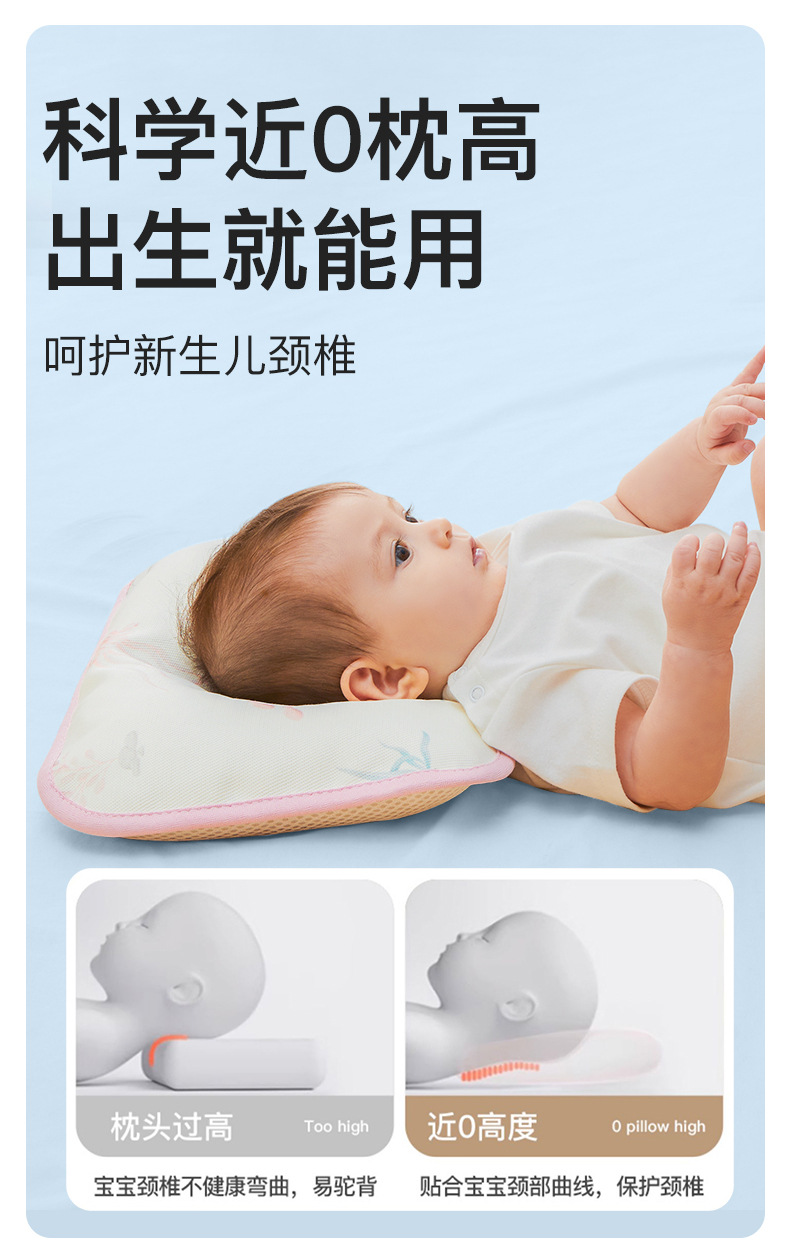 婴儿枕头宝宝定型枕0到6个月新生儿冰丝荞麦枕0一3月矫正头型夏季