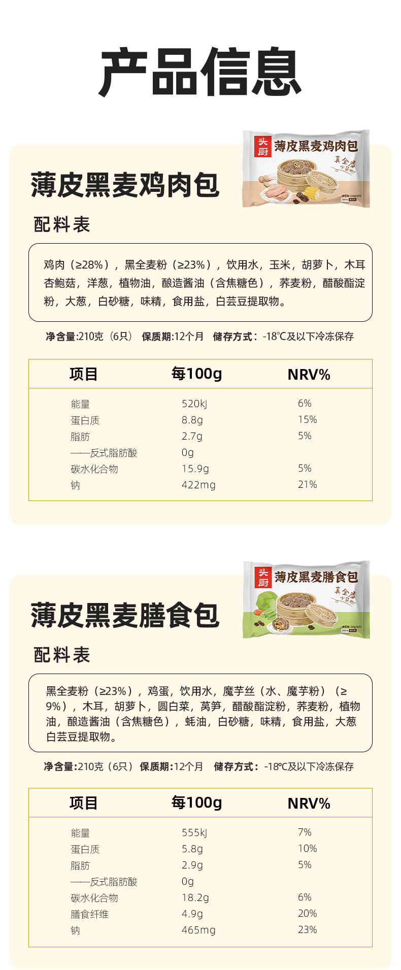 【头厨薄皮黑麦膳食包&薄皮黑麦鸡肉包】低脂控卡,皮薄馅大超有料