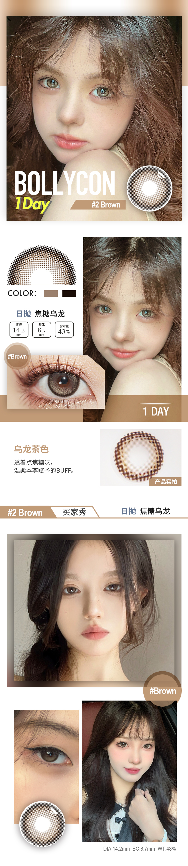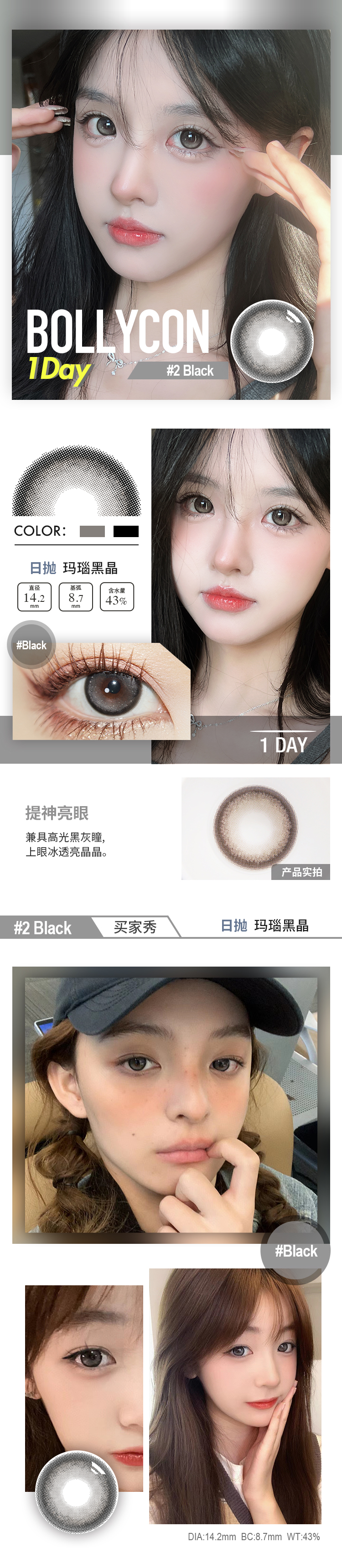 BOLLYCON 日抛 玛瑙黑晶/焦糖乌龙/银河牛仔(黑棕蓝灰14.2最高800)