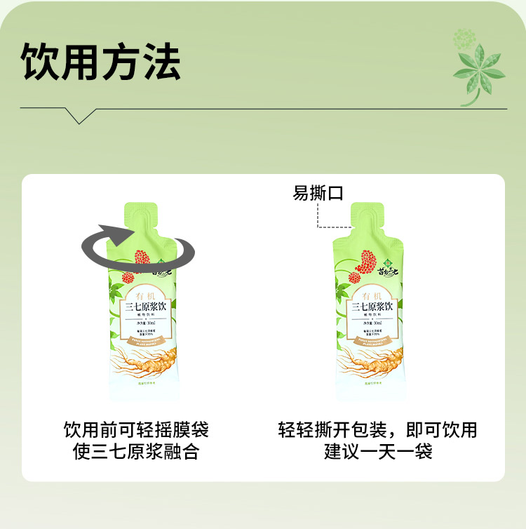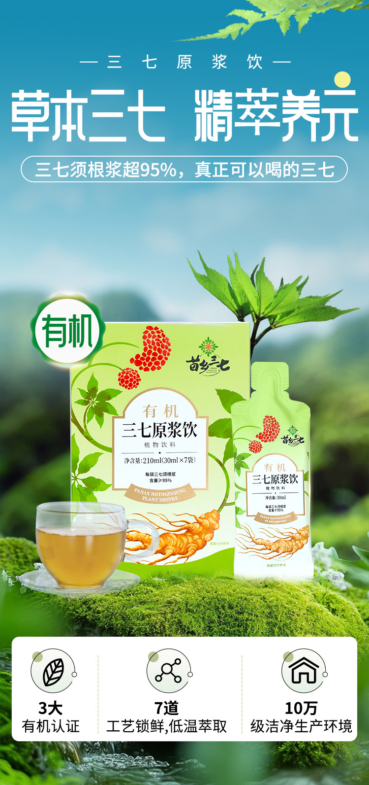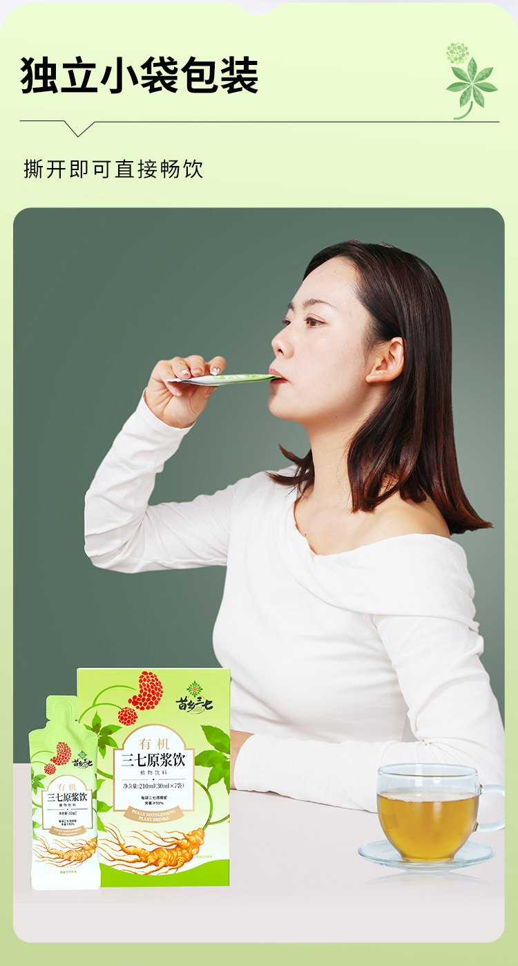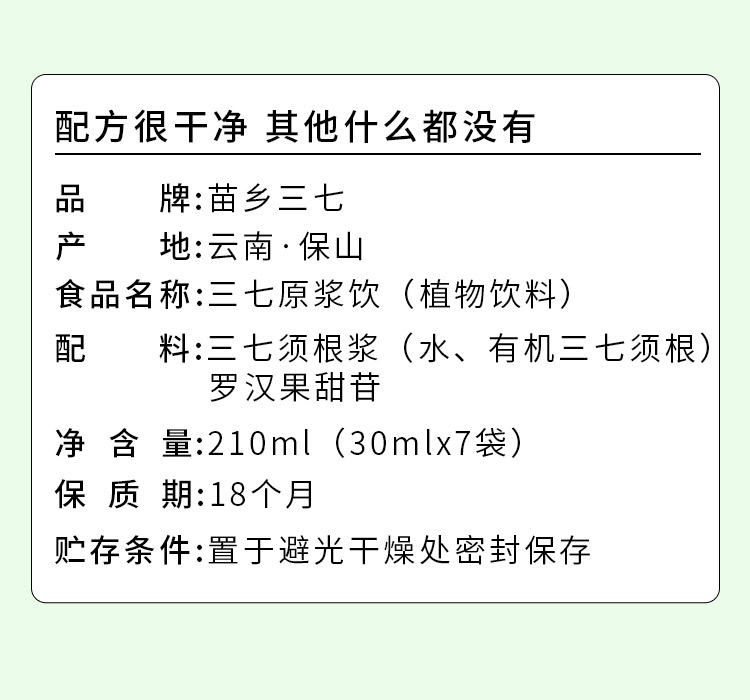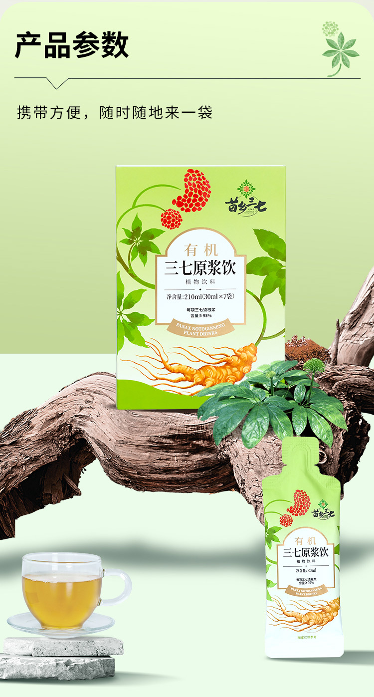 云南文山三七原浆 含量超越95% 有机三七安全可溯源 苗乡 三七须根原浆 30ml*7袋*4盒