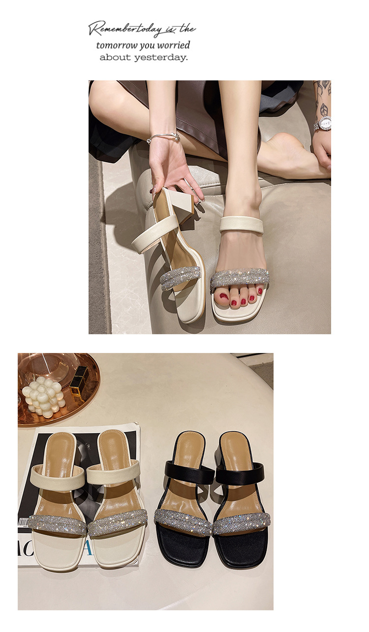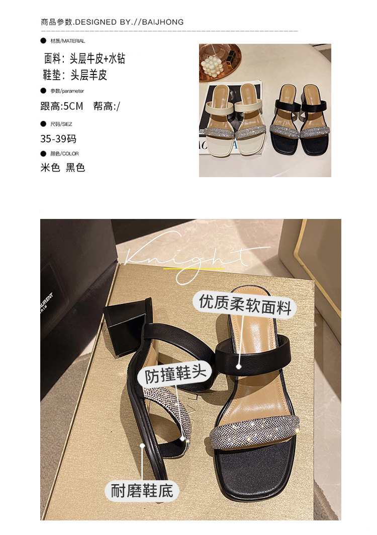 头层牛皮高跟凉拖鞋外穿时装水钻女鞋MB3331