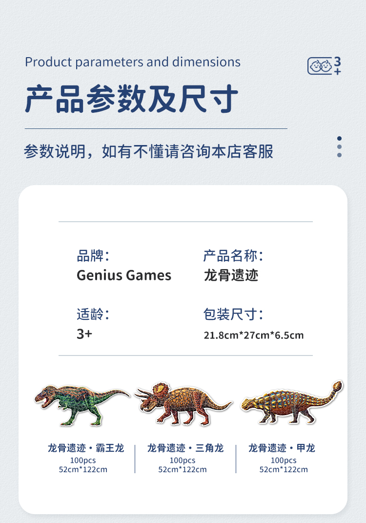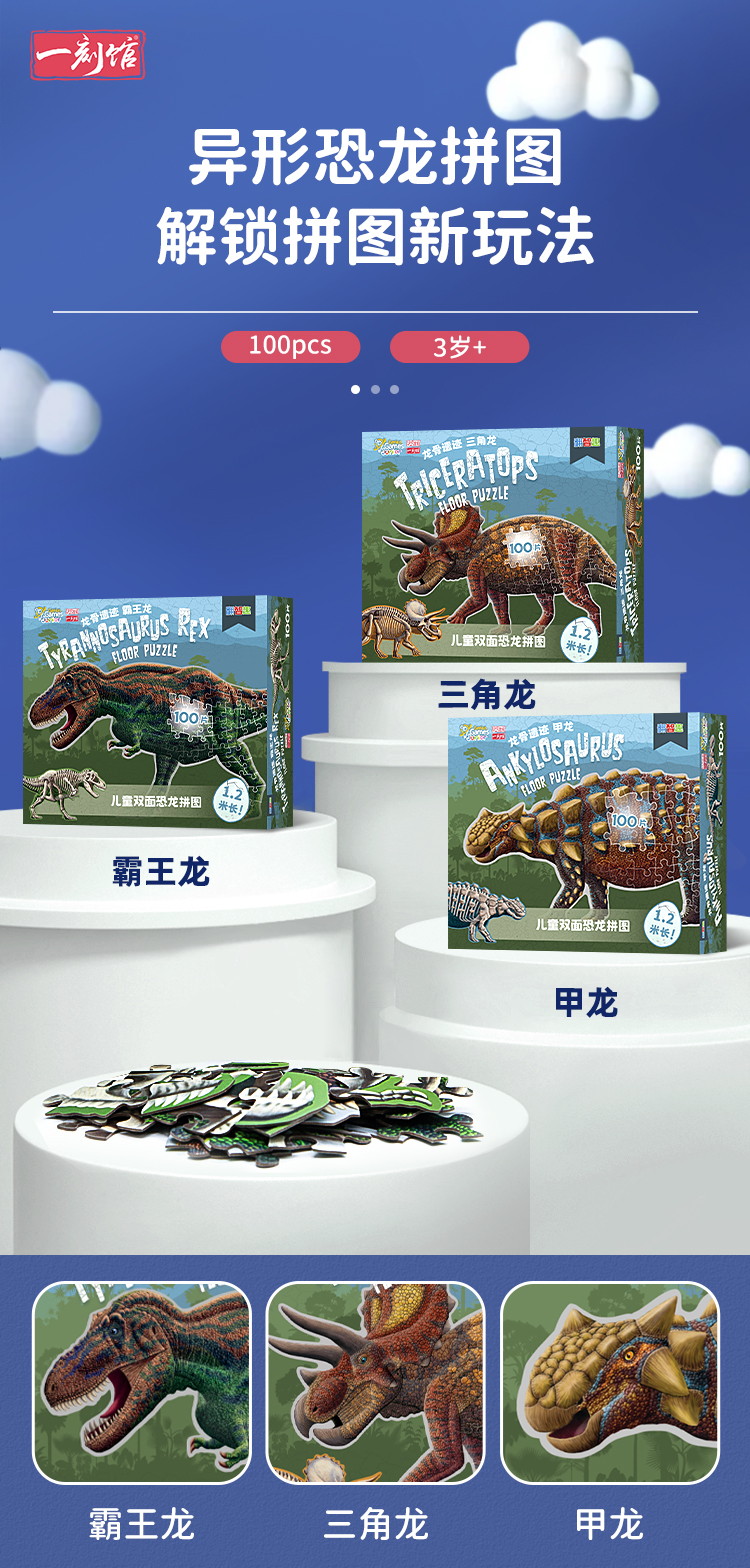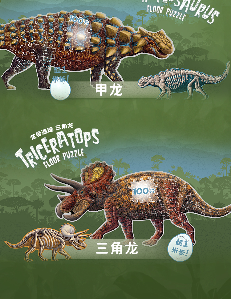 【新品】一刻馆 3岁+龙骨遗迹 异形恐龙拼图儿童益智拼图玩具