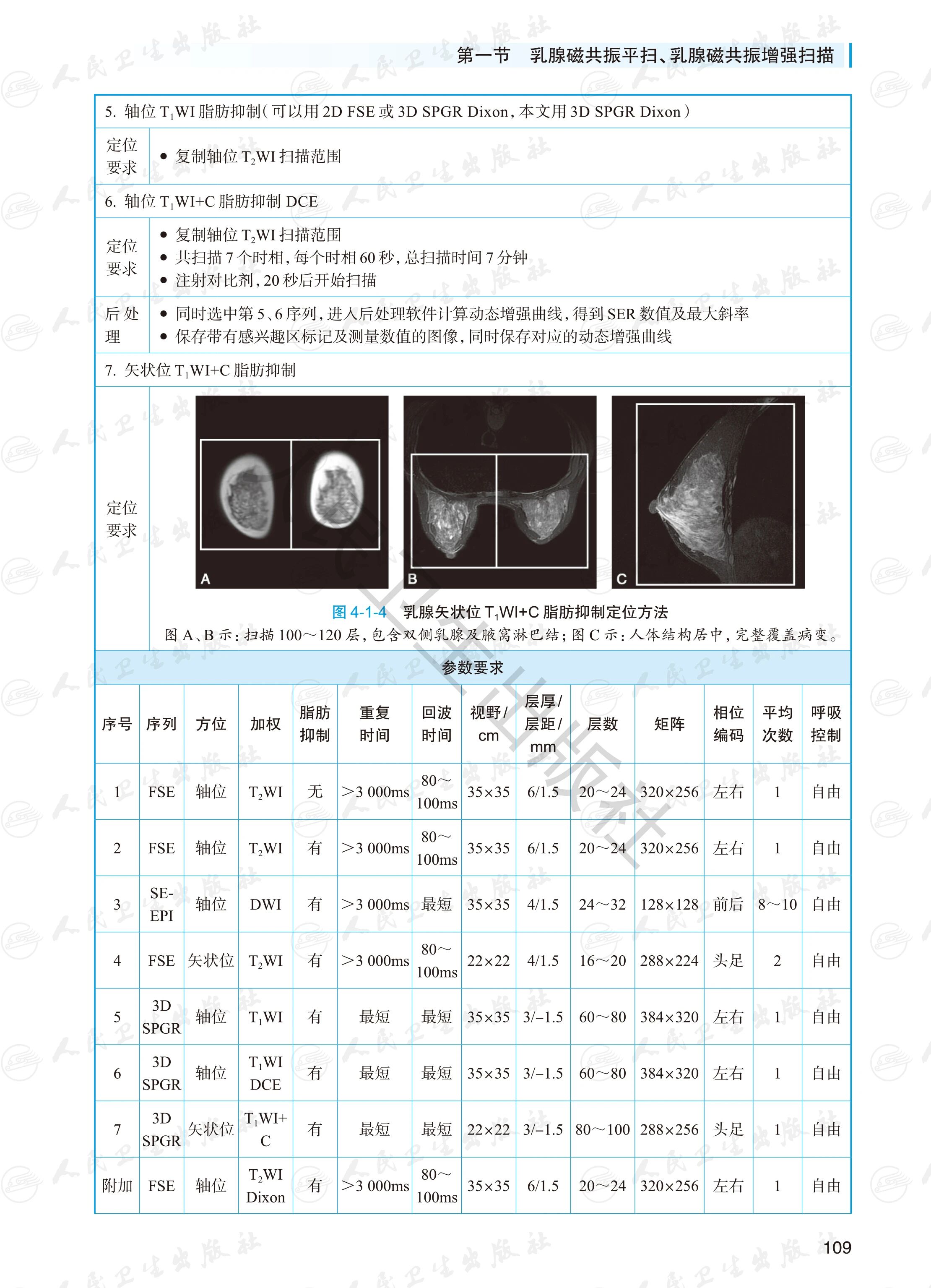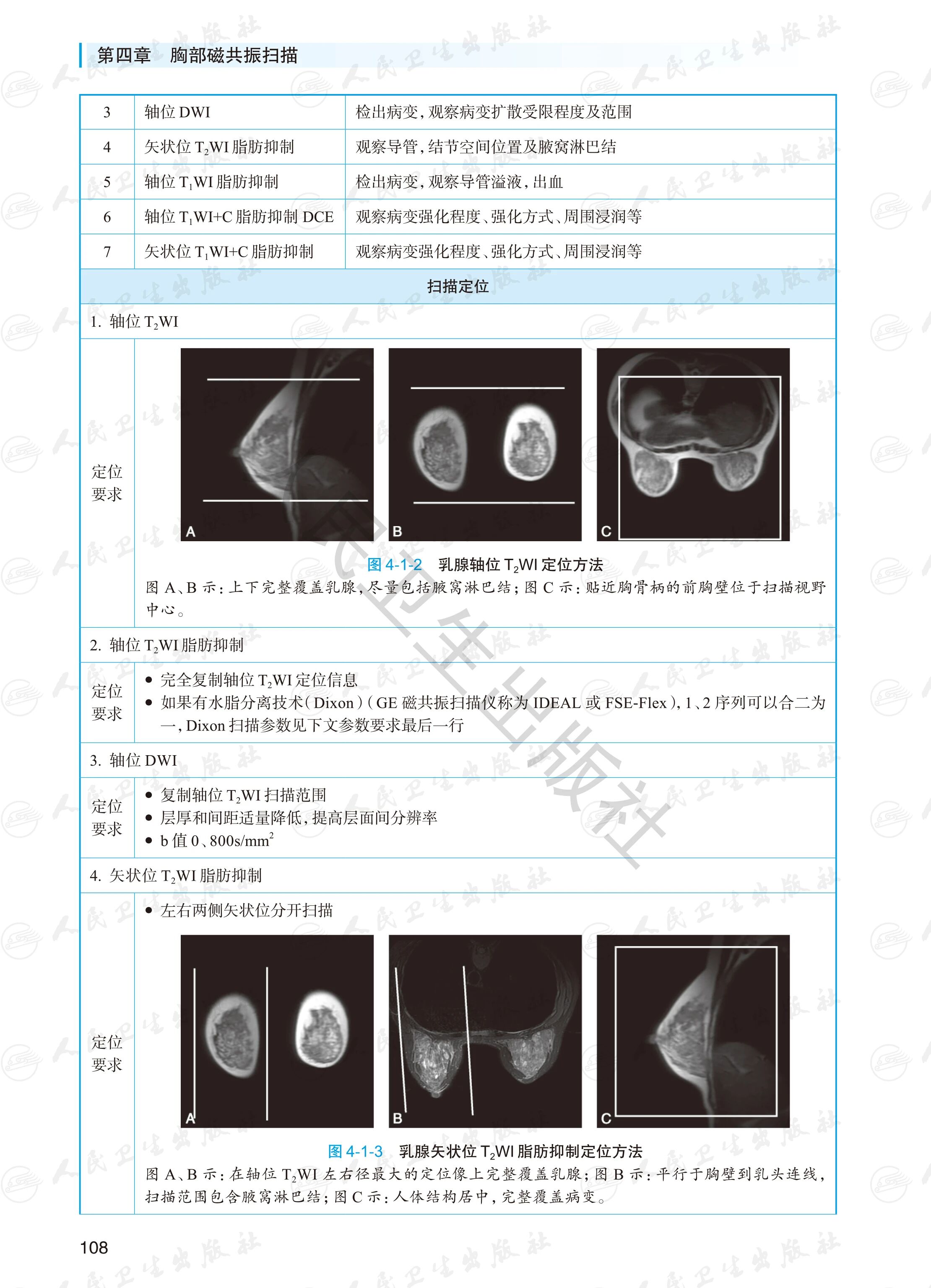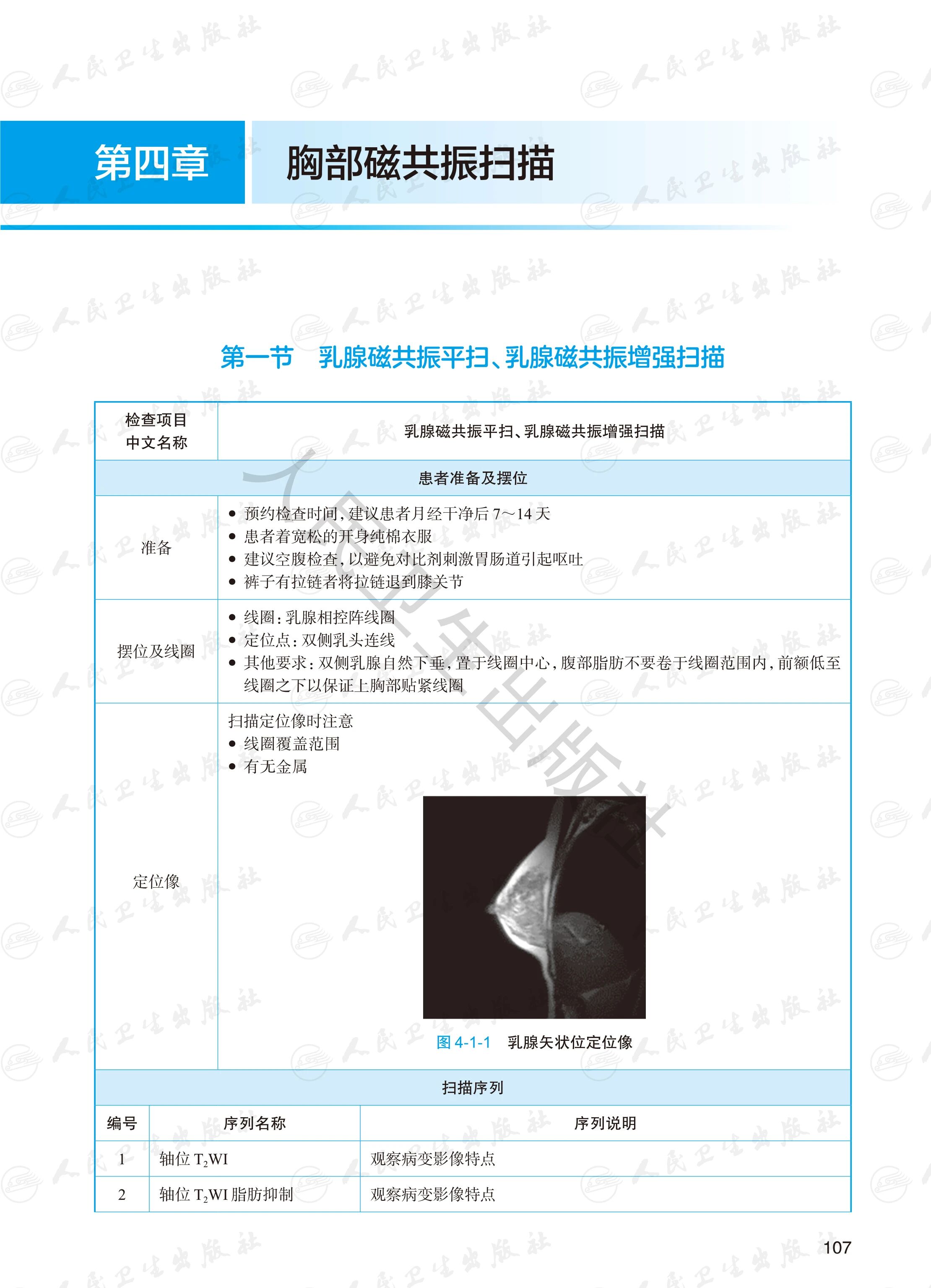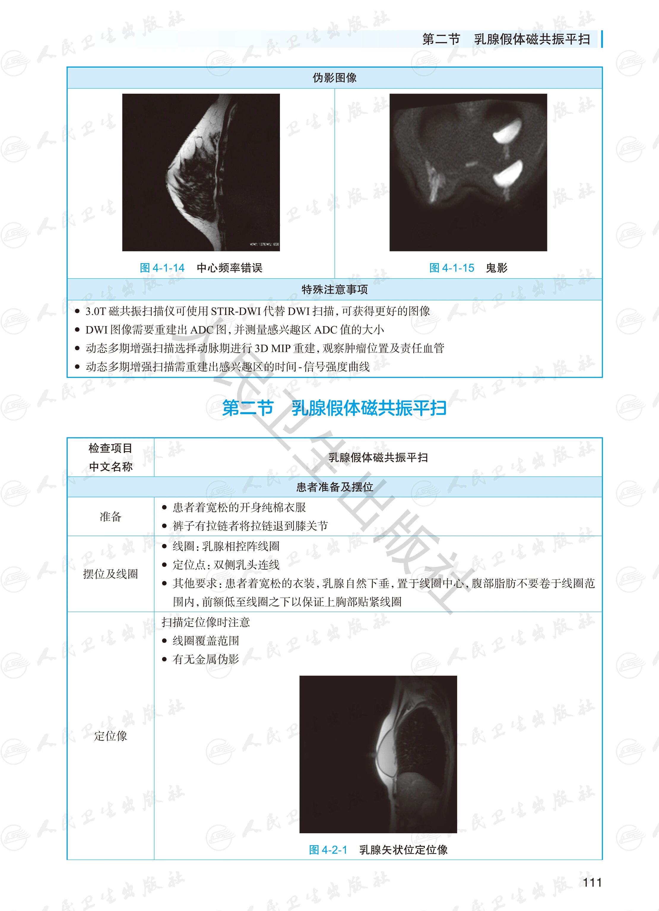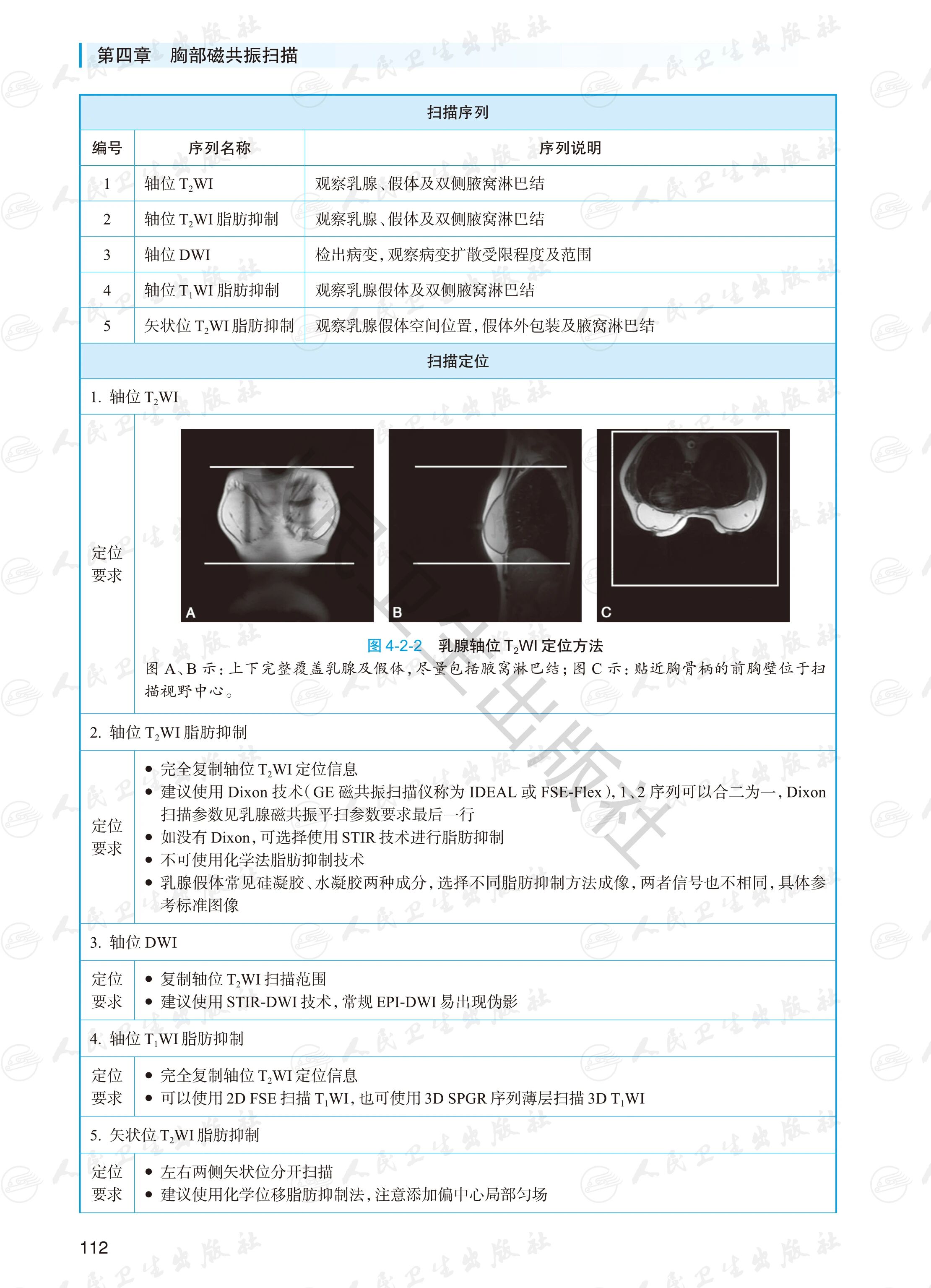 涵盖全身各部位MR检查项目,每个检查项目包括患者准备和摆位、扫描序列、扫描定位、参数要求、质量要求、标准图像示例、伪影图像、特殊注意事项等。