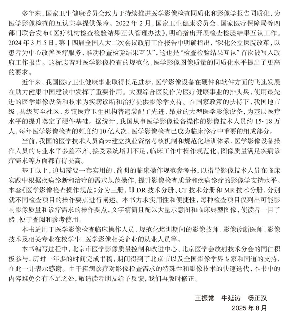 本丛书共分为三个分册:DR(数字X射线摄影)成像分册、CT(计算机体层摄影)成像分册、MR(磁共振)成像分册。有别于常规教材和专著,本丛书不涉及相关理论基础和检查目的等内容,而是以影像技师在临床实操中需要掌握的技术要点,以及影响影像质量的关键环节、要素为重点内容,力求简明、要点突出、便于查阅。