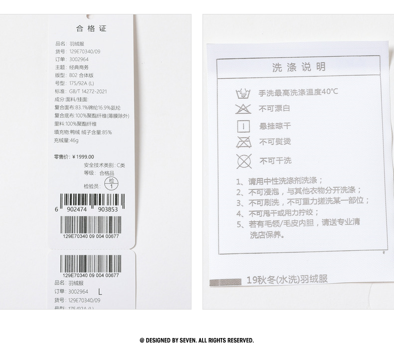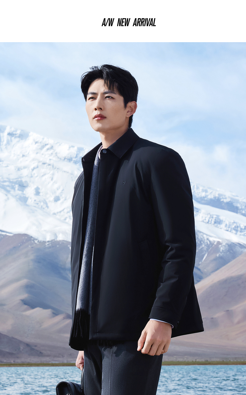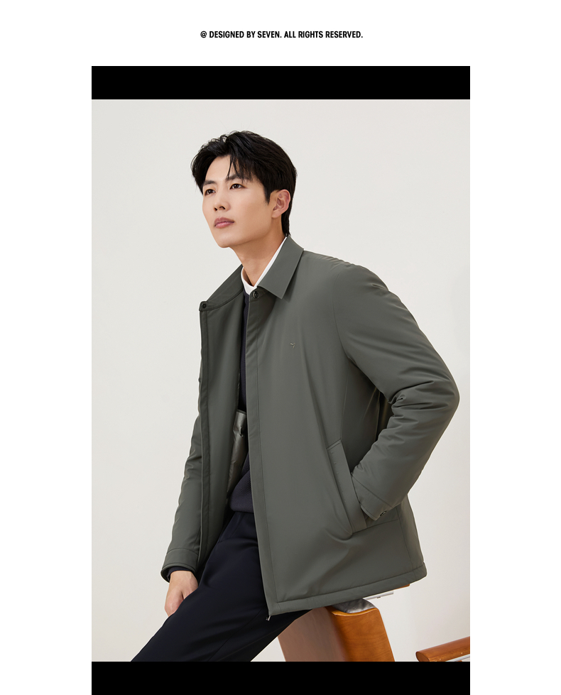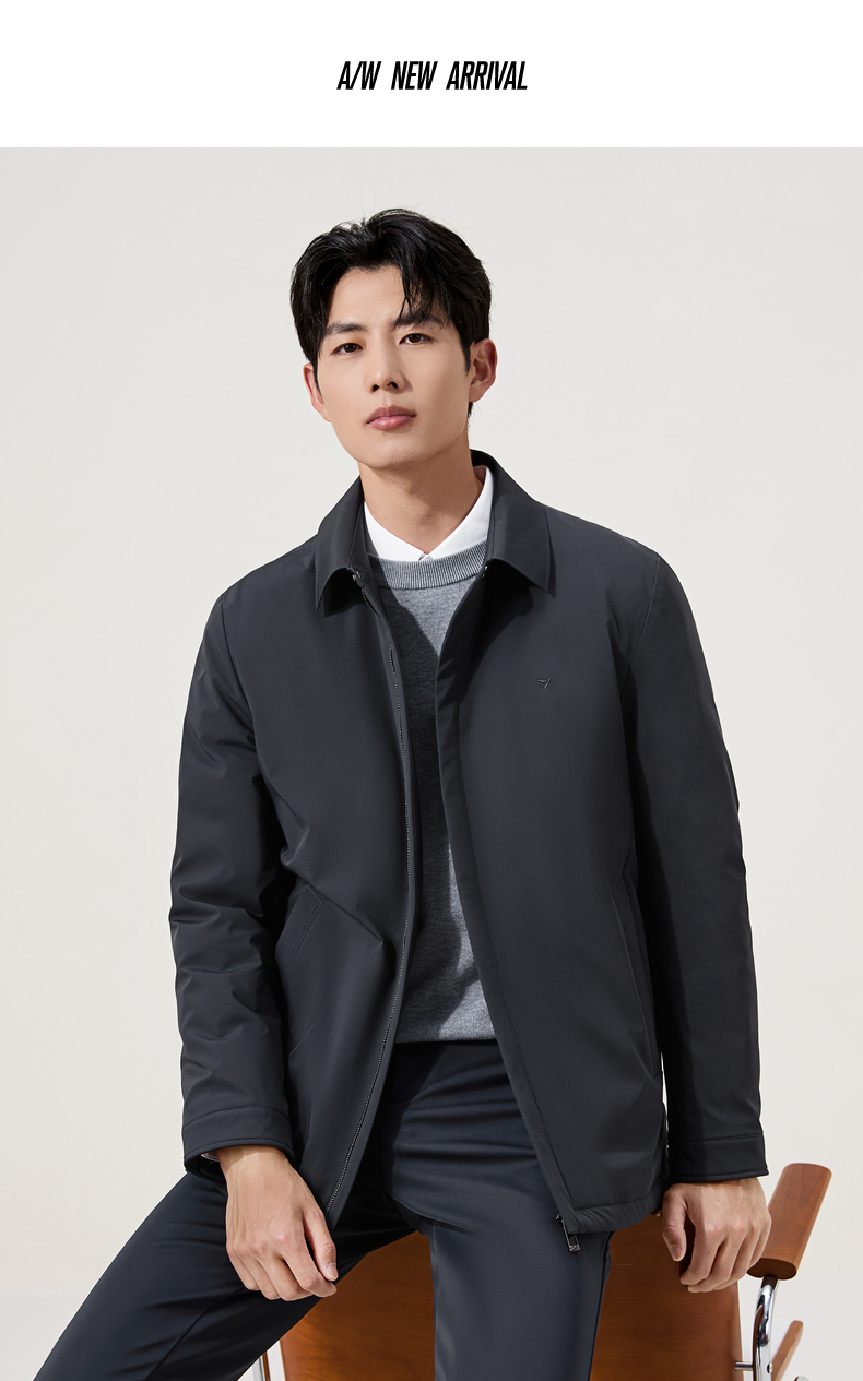 【黄金鲜羽绒】柒牌翻领羽绒服秋冬休闲白鸭绒商务行政夹克外套129E70340