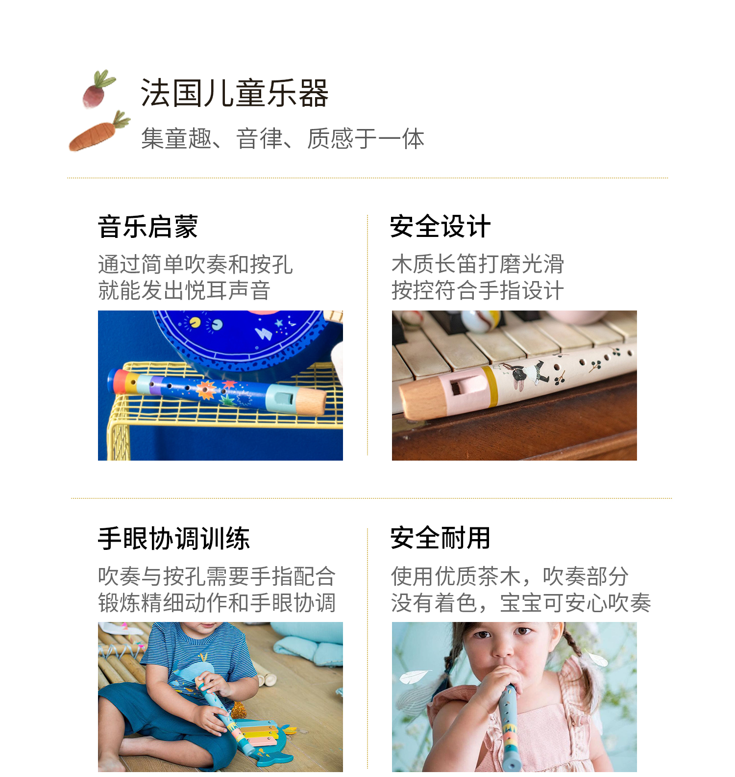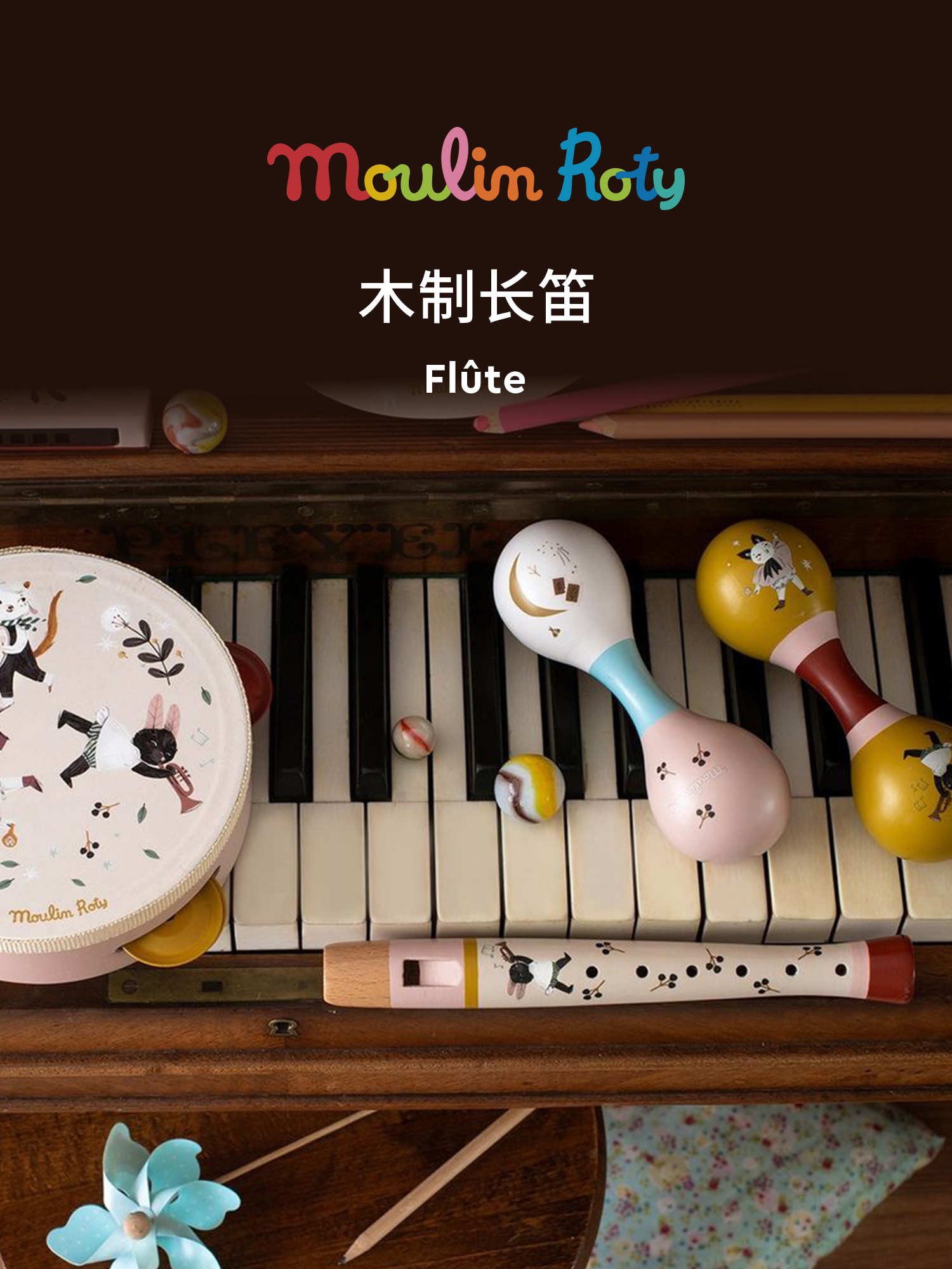 Moulin Roty 木制长笛 雨后精灵系列 乐器玩具 适合3岁+ 音律启蒙 法国品牌 -715112