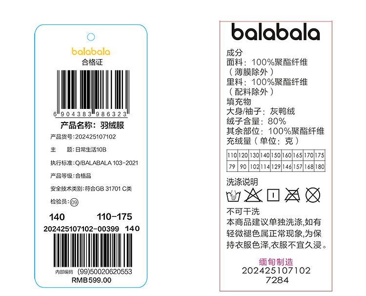 【商场同款】巴拉巴拉童装儿童羽绒服男童2025年新款冬季保暖外套