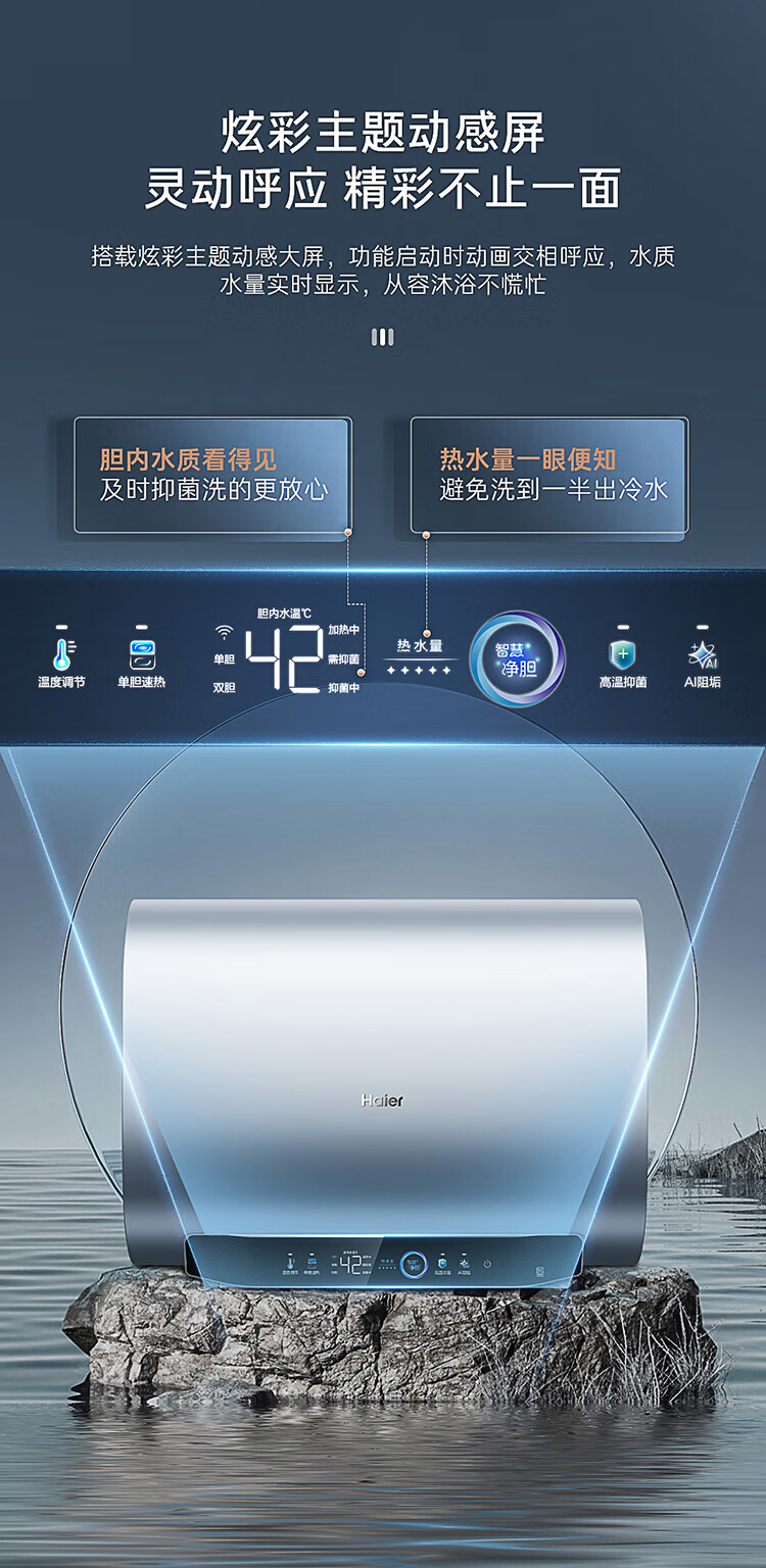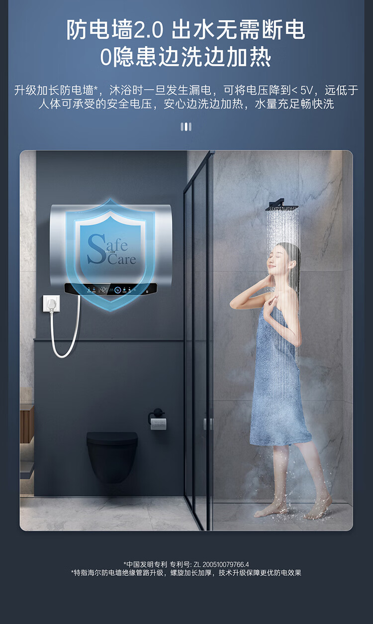 海尔(Haier)60升家用电热水器 3300W大功率速热 一级能效节能 EC6003HD-BKCU1