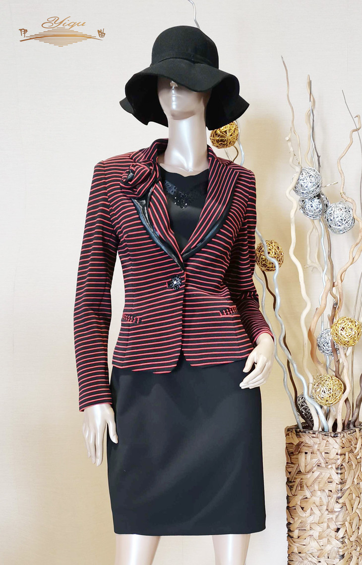 【特惠】YIQU |“牡丹之歌”西装上衣(黑红条纹)