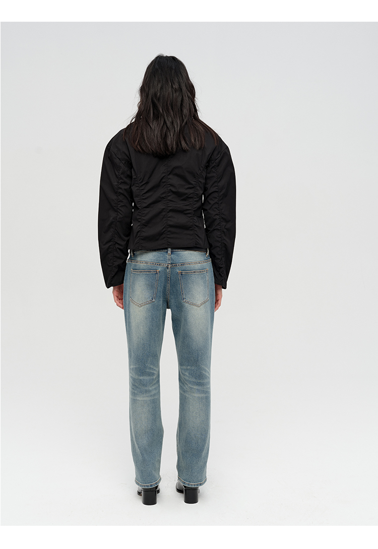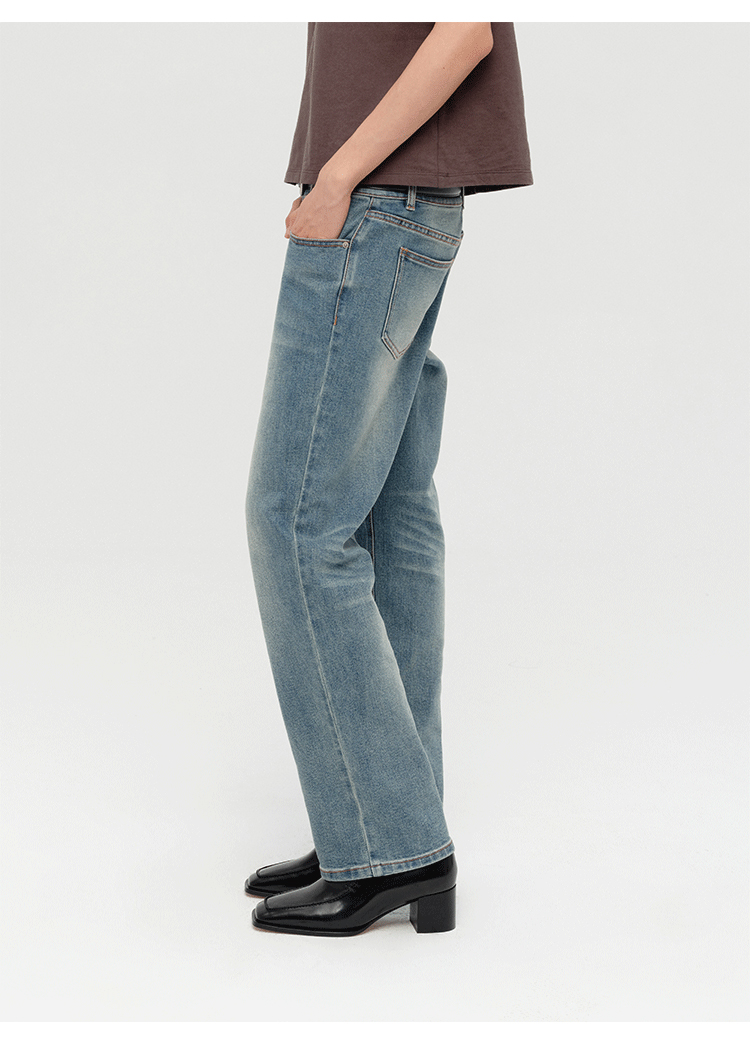 HIDEMI 多重水洗做旧显瘦复古中低腰九分小脚牛仔裤