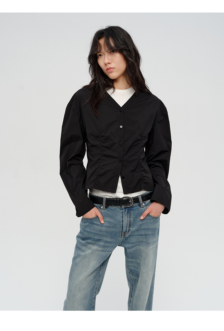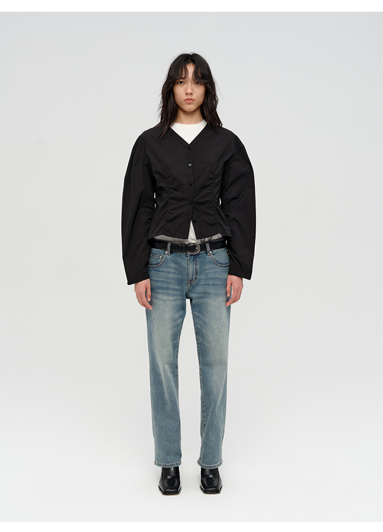 HIDEMI “自由是生命的氧气”/氧气绿天丝亚麻口袋设计感衬衫