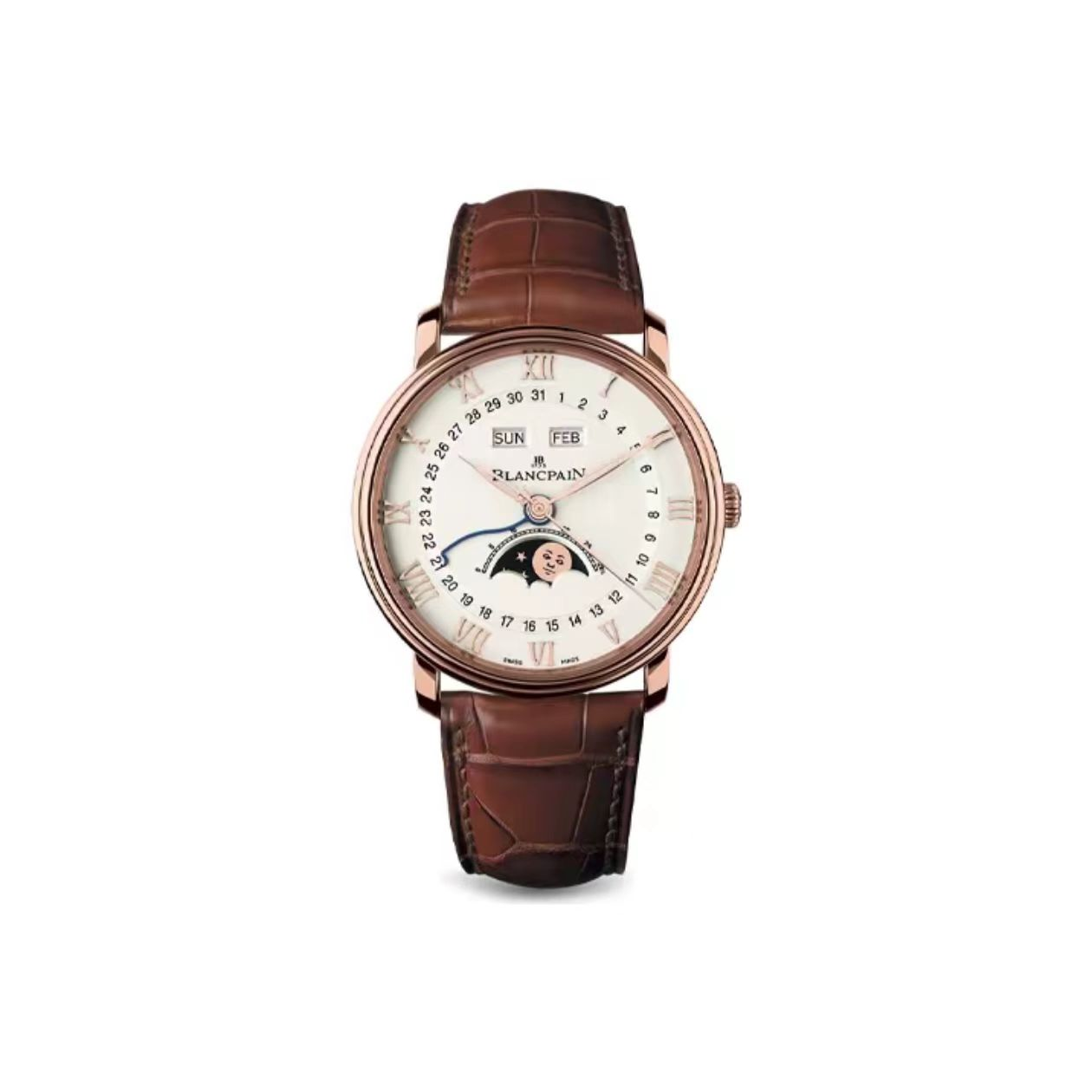 BLANCPAIN宝珀 经典系列VILLERET 自动机械机芯 30m防水 男表 瑞表 40mm 白色表盘 红金表壳 鳄鱼皮表带