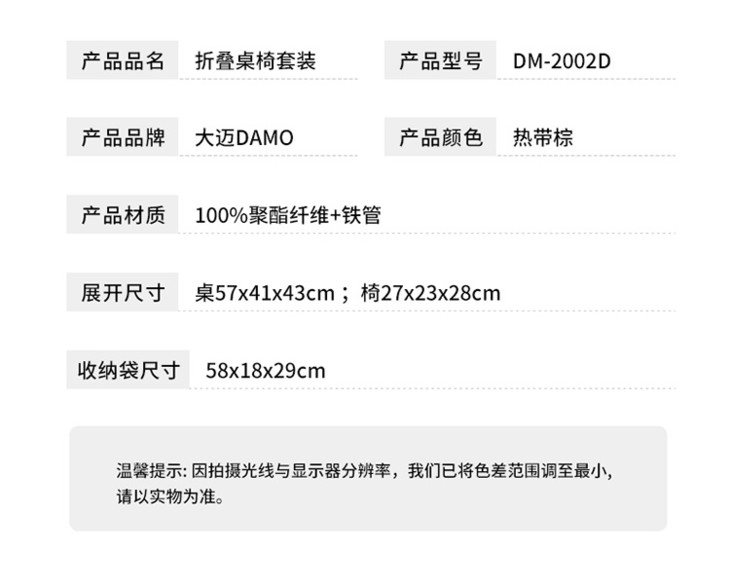 大迈DAMO折叠桌椅套装DM-2002D(1桌2椅)