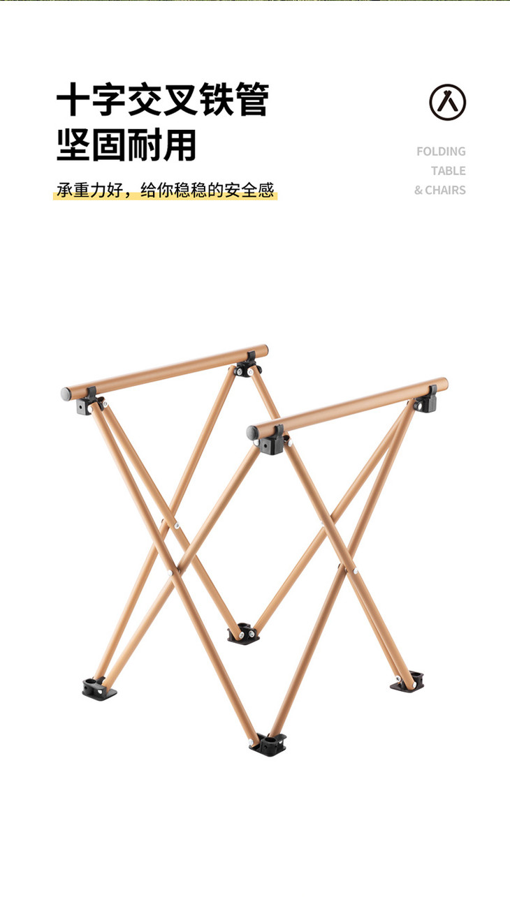 材质交叉铁管,非常的坚固耐用 椅子承重100kg 桌子承重15kg