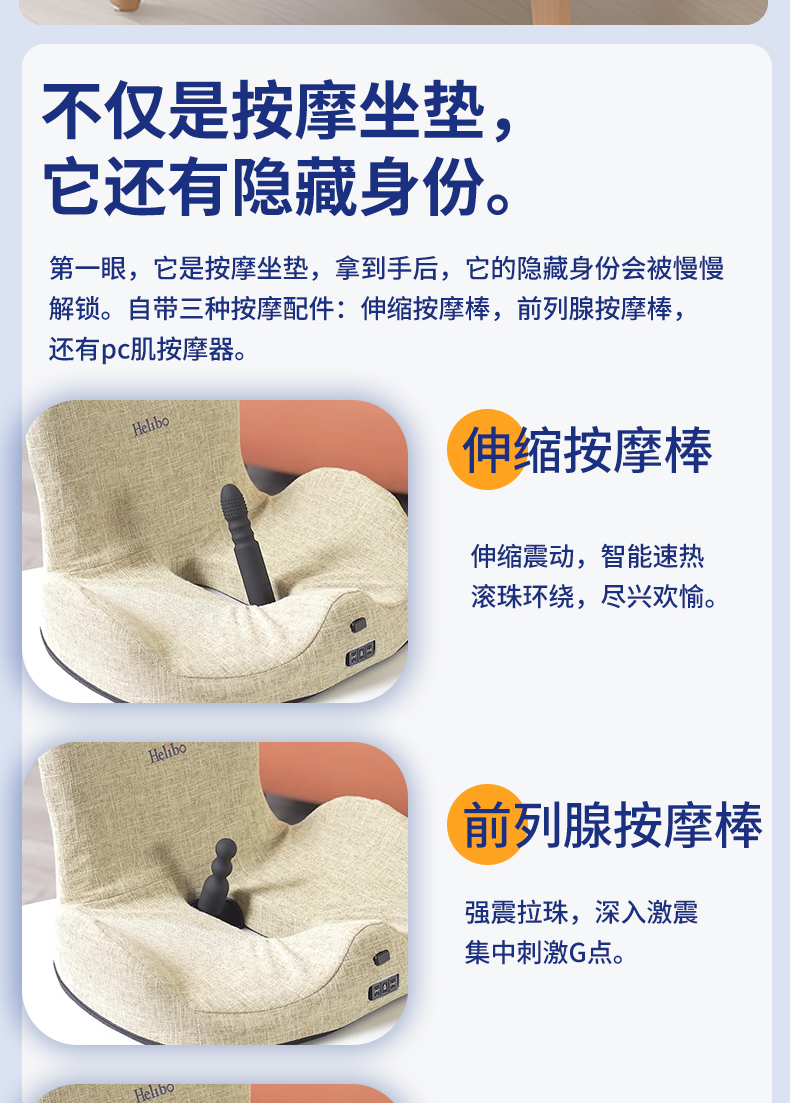 Helibo多功能性按摩坐垫成人用品女人自我安慰电动私处插入式振动按摩情趣玩具工具辅助性减压 坐垫套装