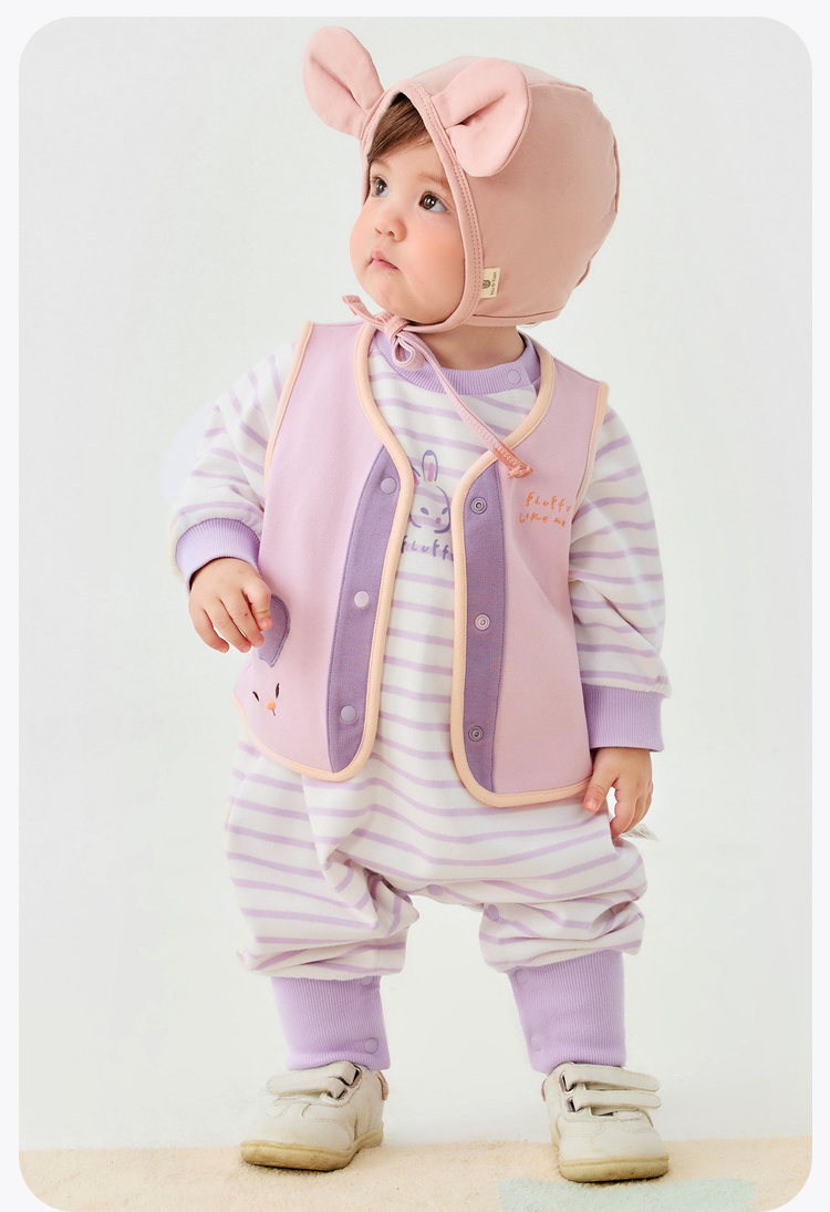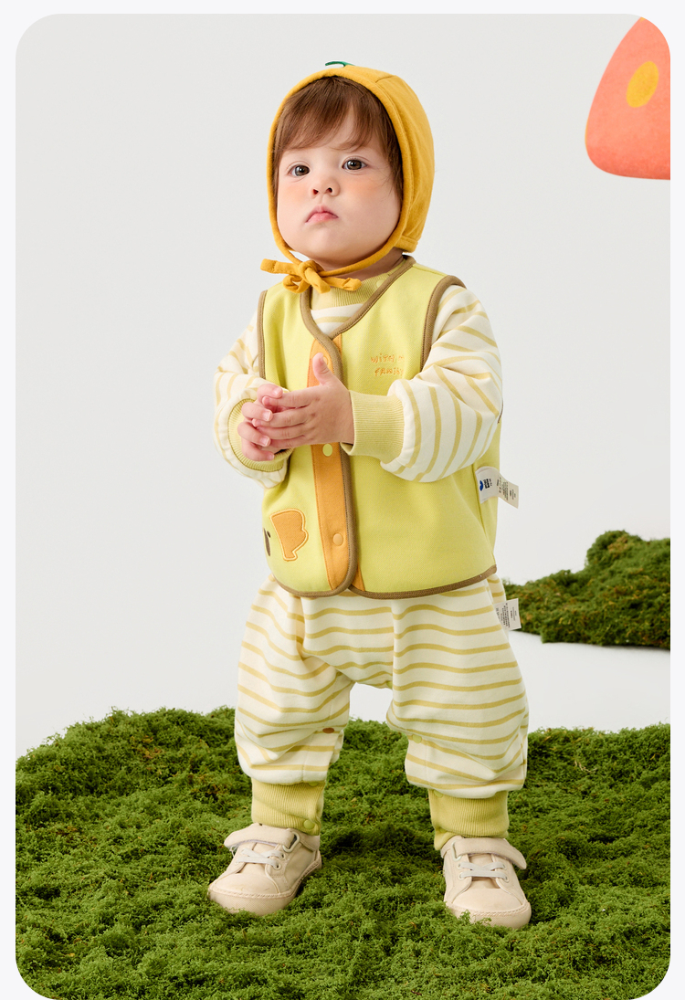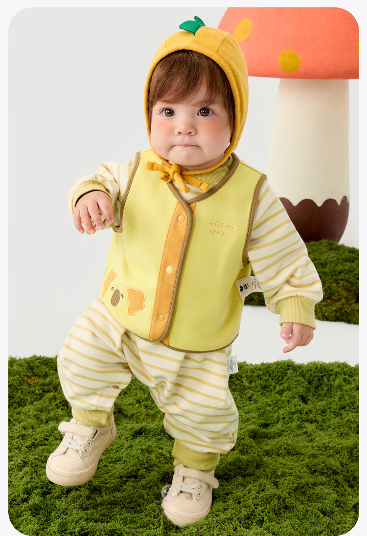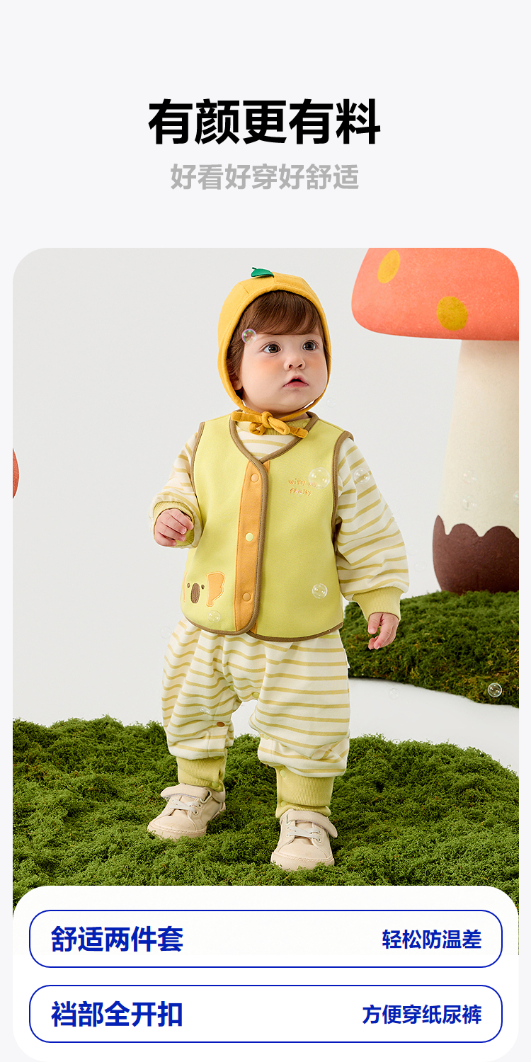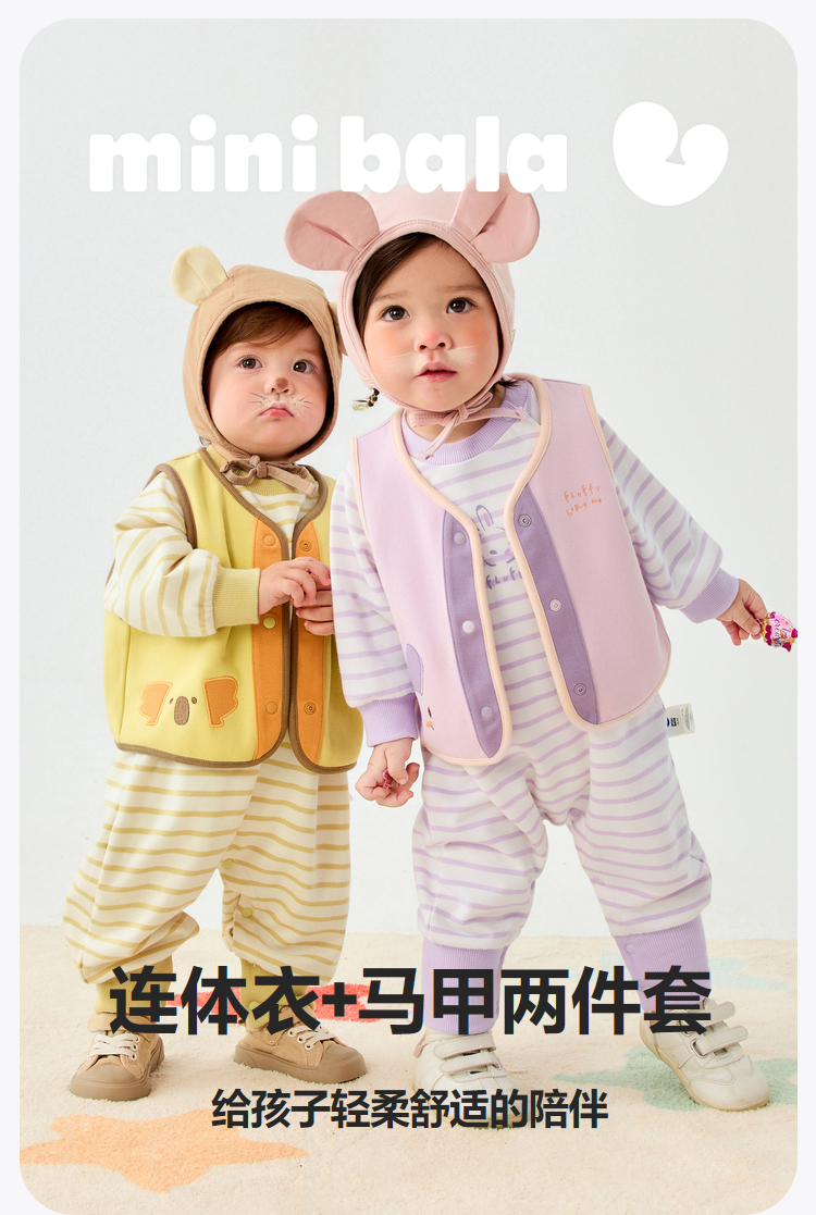 迷你巴拉外出连体衣马甲套装男童女童马甲背心两件套春季新款